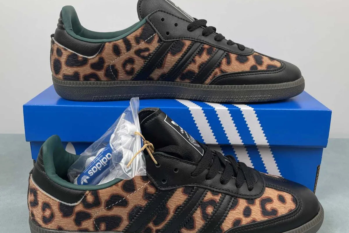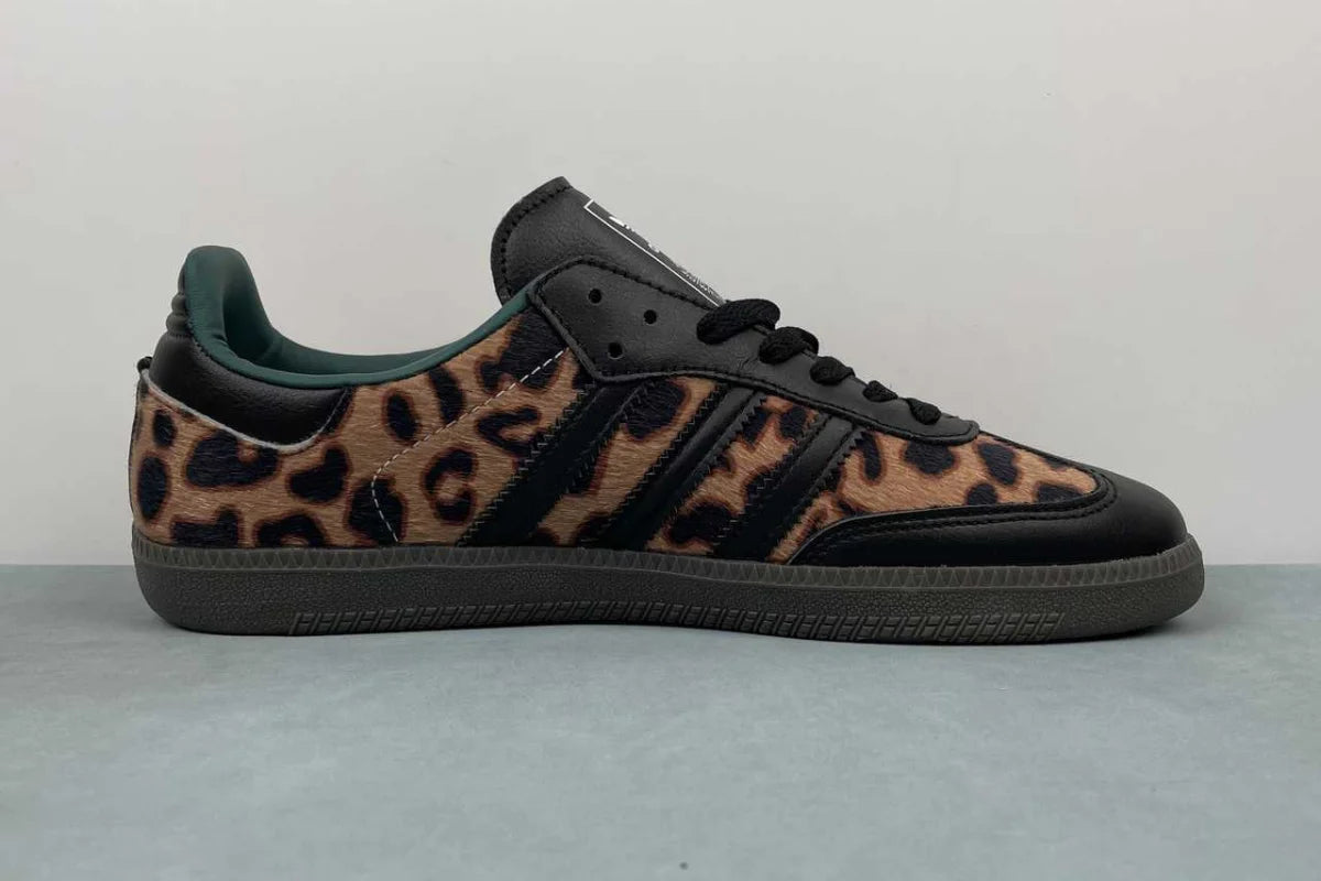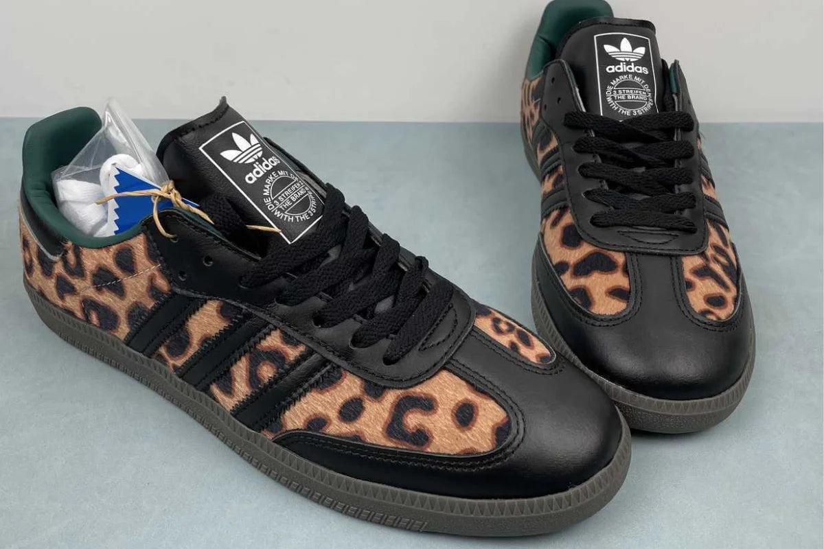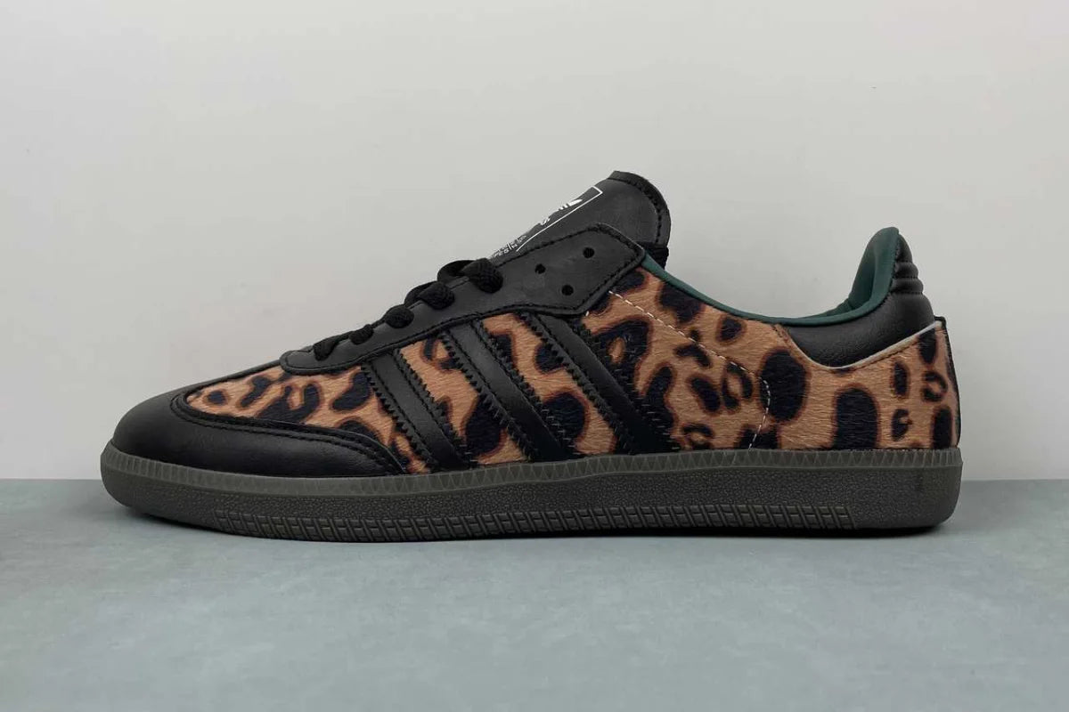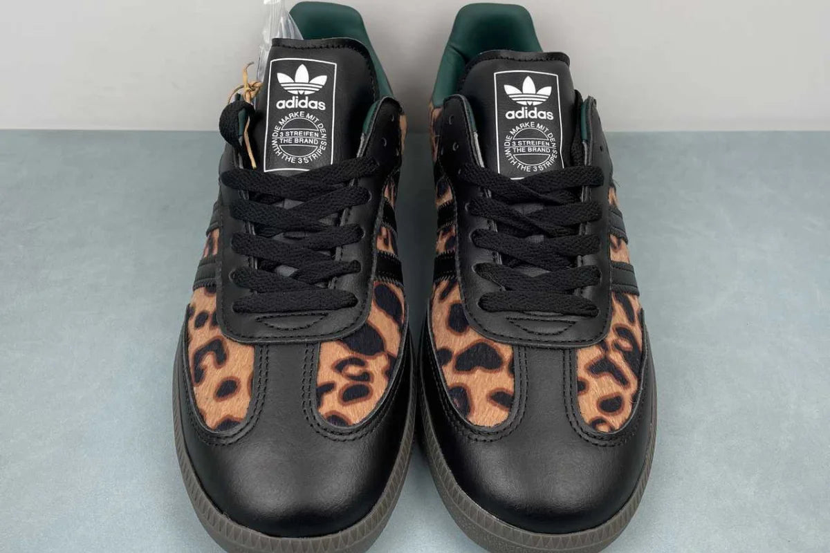 Step out in bold confidence with the Adidas Samba “Black Leopard Print” Sneakers, a fierce update to a timeless classic. These sneakers feature a premium faux-fur leopard pattern with sleek black leather overlays, giving them a luxurious and edgy look. The cushioned interior and durable rubber outsole ensure long-lasting comfort and grip. Perfect for fashion-forward individuals, these shoes blend streetwear energy with vintage Adidas heritage.