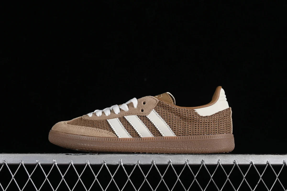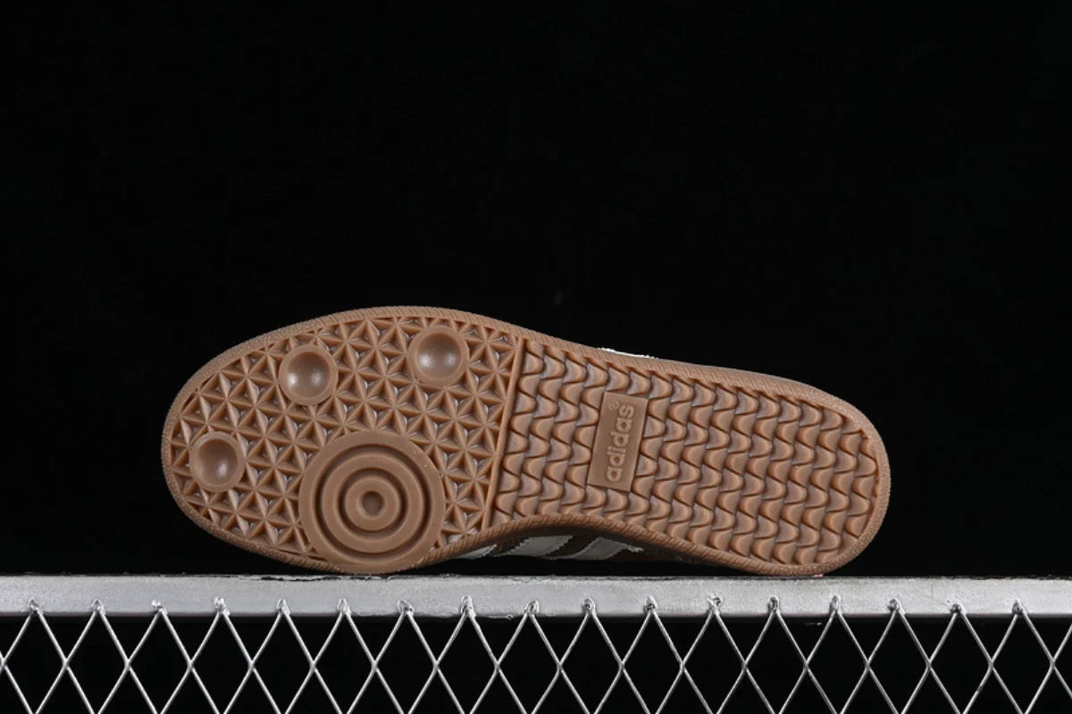 This version features a premium “Cardboard” brown upper crafted from soft leather and suede, paired with off-white 3-Stripes and heel detailing for a clean, balanced contrast. The classic gum rubber outsole not only enhances traction but also adds that authentic retro finish the Samba is known for.