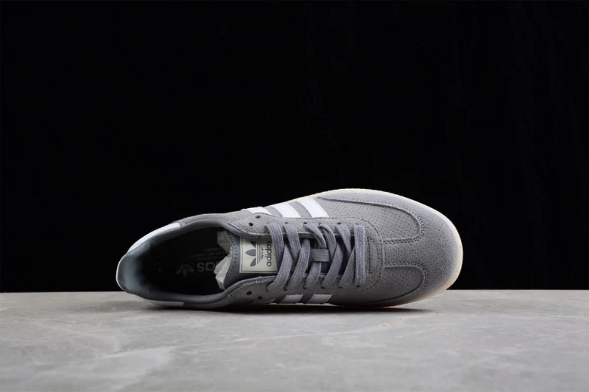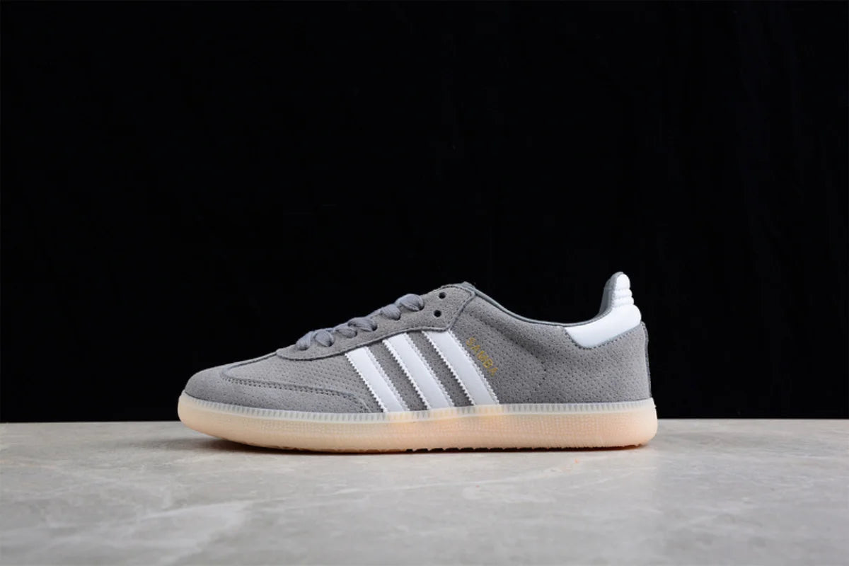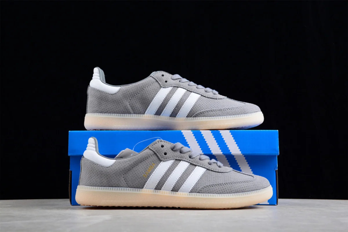Stay timeless with the Adidas Samba OG Grey Suede Sneakers, a perfect blend of heritage style and modern comfort. These sneakers feature a soft grey suede upper, the iconic white three stripes, and a retro gum rubber outsole that delivers excellent grip and a vintage look.