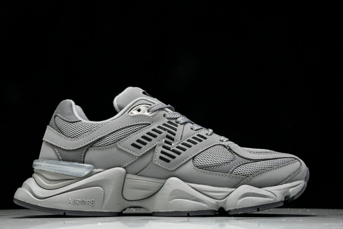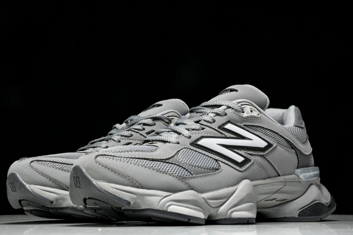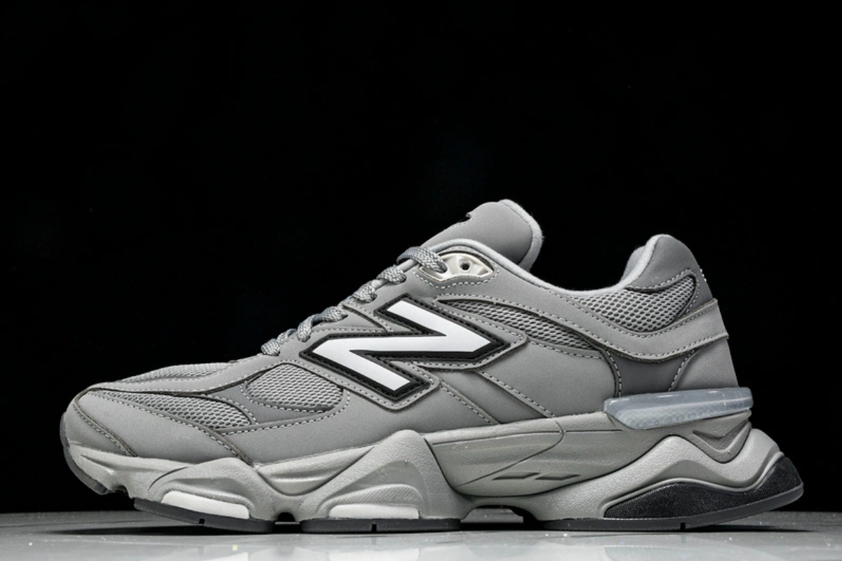 The New Balance NB9060 Jointly Designed Dark Gray/White features a bold, collaborative design with a mix of suede and mesh in dark gray tones, accented by crisp white details. Its chunky sole and ABZORB cushioning offer comfort and a futuristic edge, blending performance with modern street style.