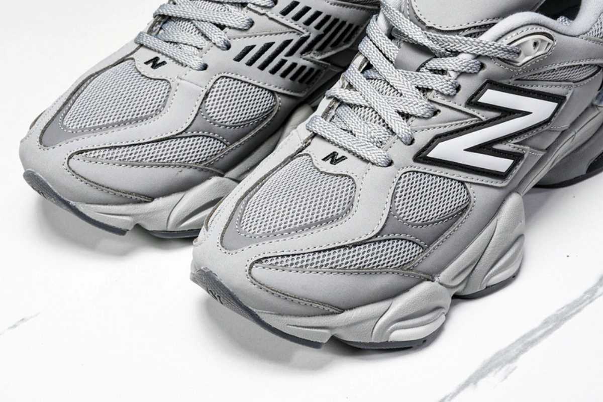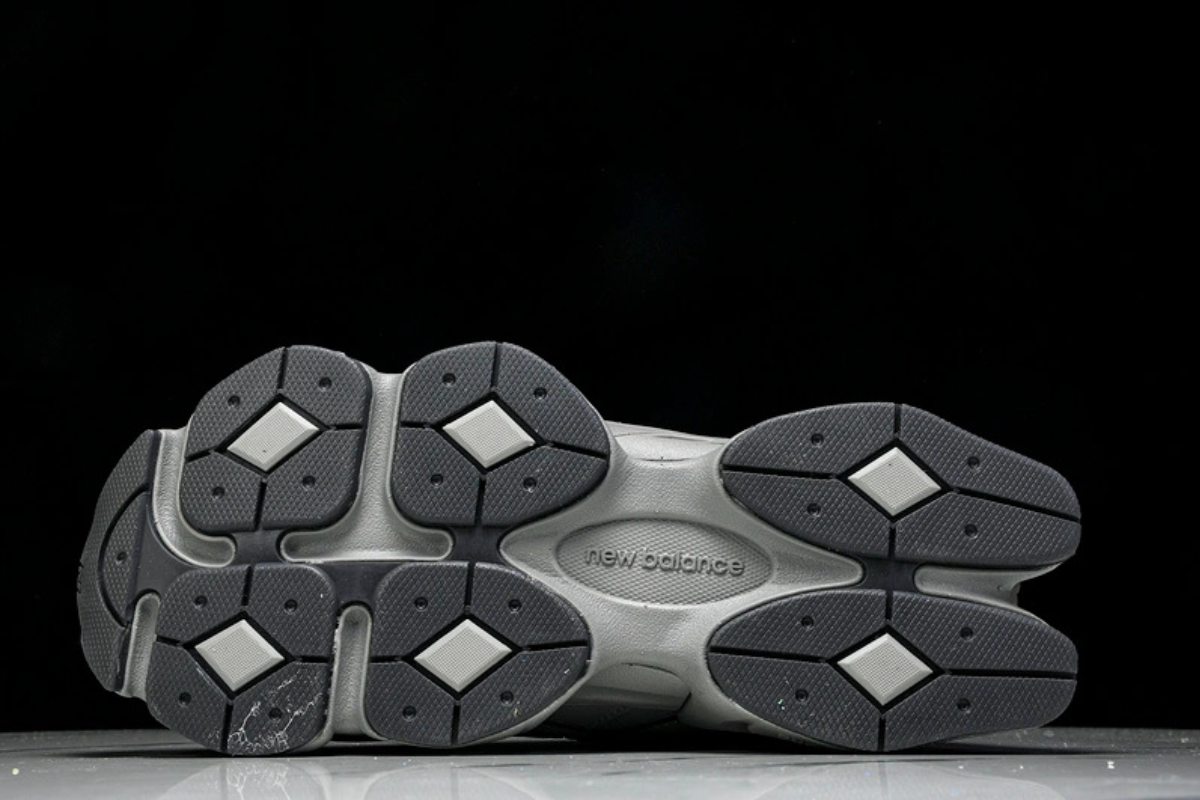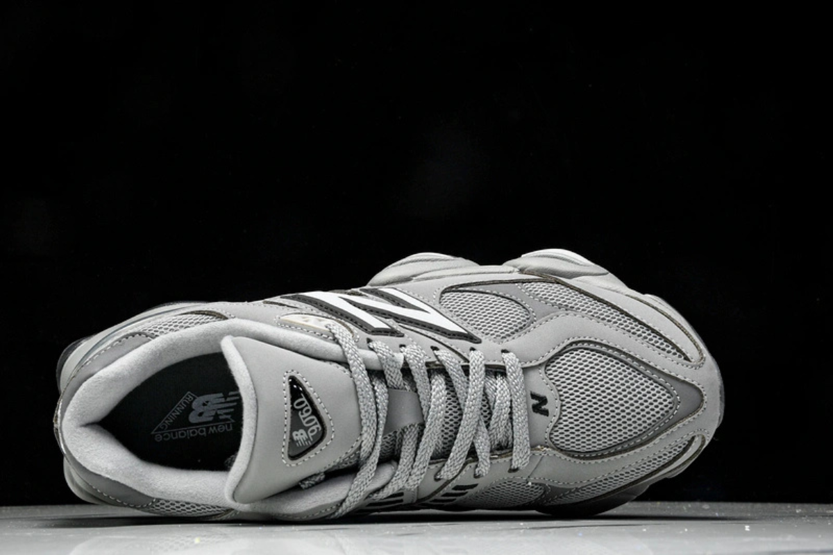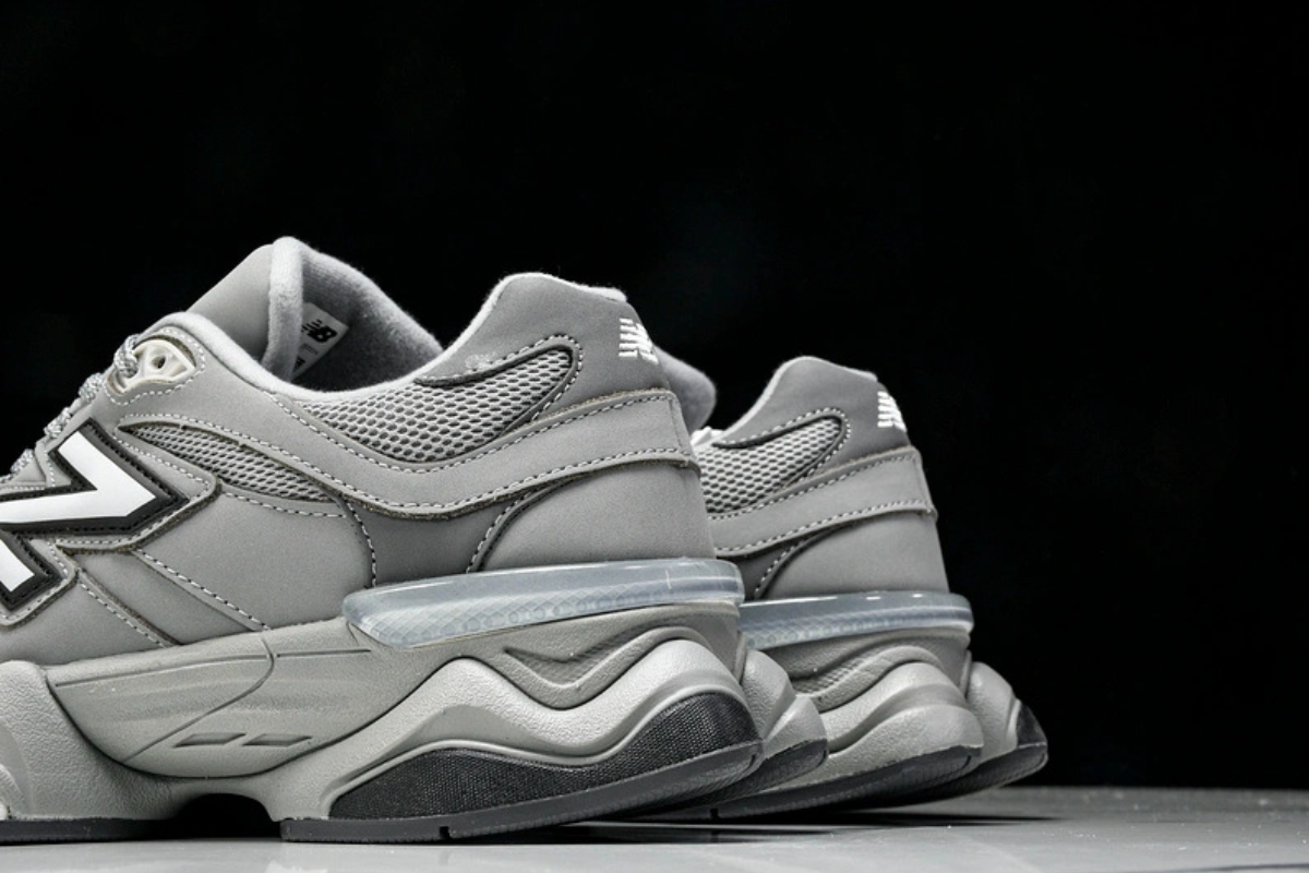 The New Balance NB9060 Jointly Designed Dark Gray/White features a bold, collaborative design with a mix of suede and mesh in dark gray tones, accented by crisp white details. Its chunky sole and ABZORB cushioning offer comfort and a futuristic edge, blending performance with modern street style.