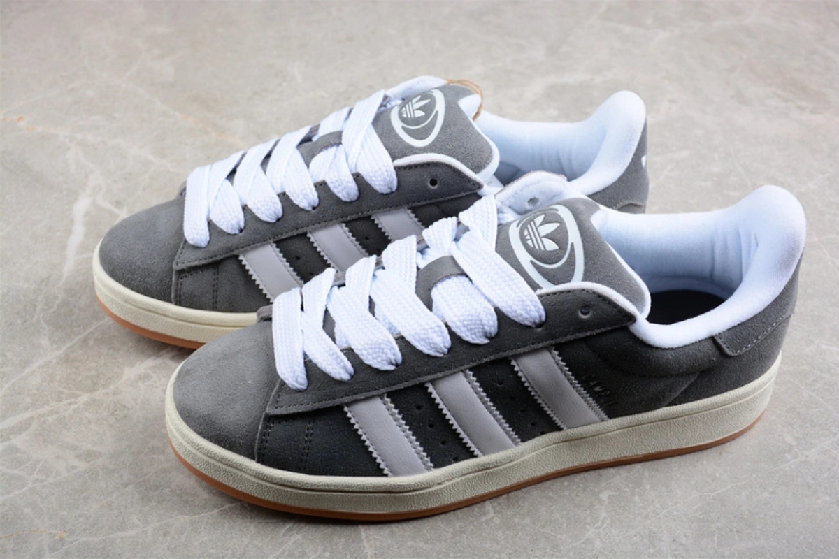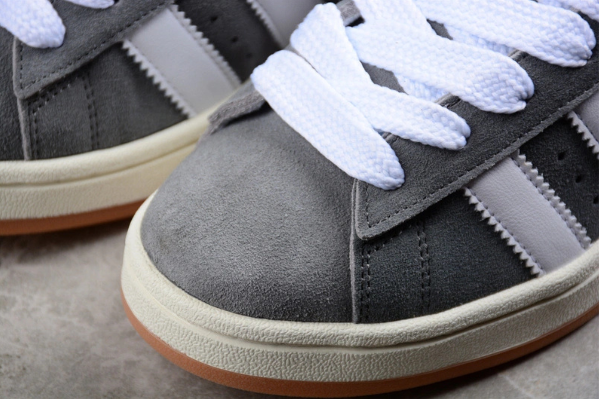 Adidas Campus 00s Grey Three/Cloud White/Off White blends retro skate style with modern comfort. Featuring a premium suede upper in soft grey tones, classic 3-Stripes in white, and an off-white rubber sole, this sneaker delivers a clean, vintage-inspired look perfect for everyday wear