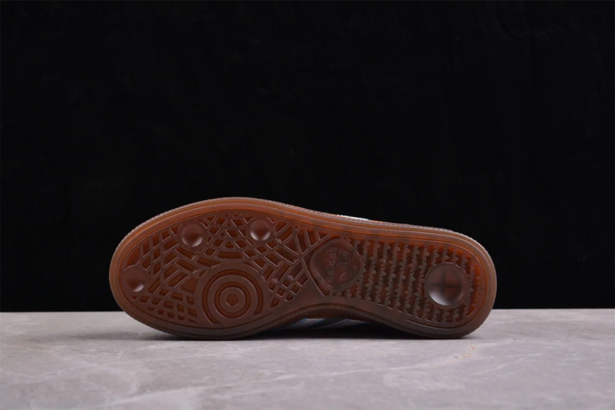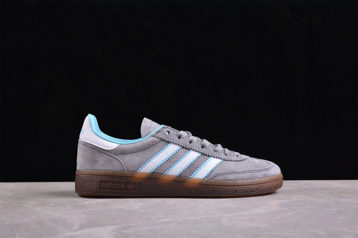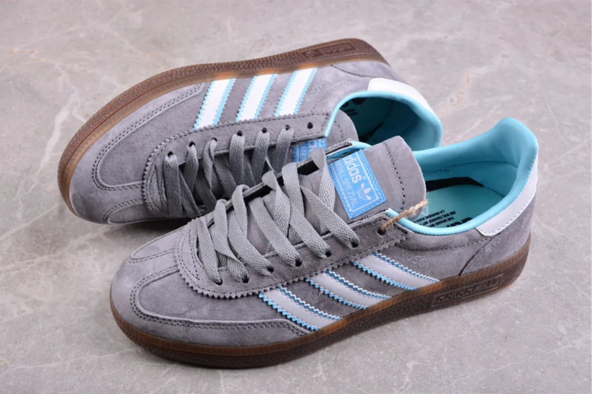 Refresh your sneaker rotation with the Adidas Handball Spezial “Grey Ice Blue”. This pair features a soft grey suede upper, accented with light blue and white Three-Stripes, giving it a clean and modern look. Originally designed as indoor training shoes, the Spezial has evolved into an essential streetwear silhouette loved worldwide.