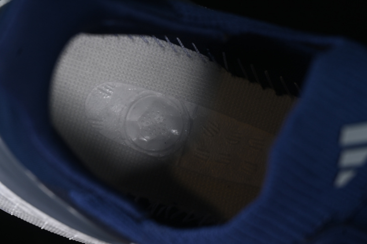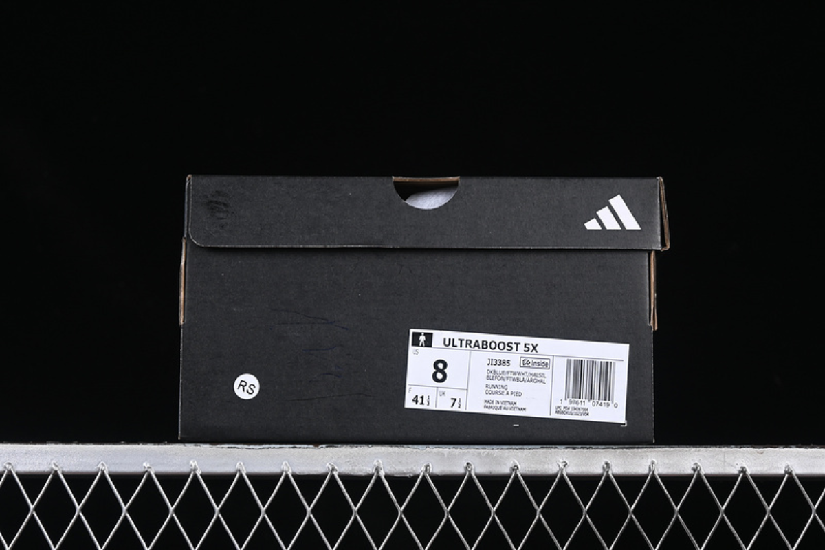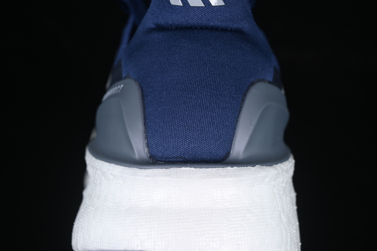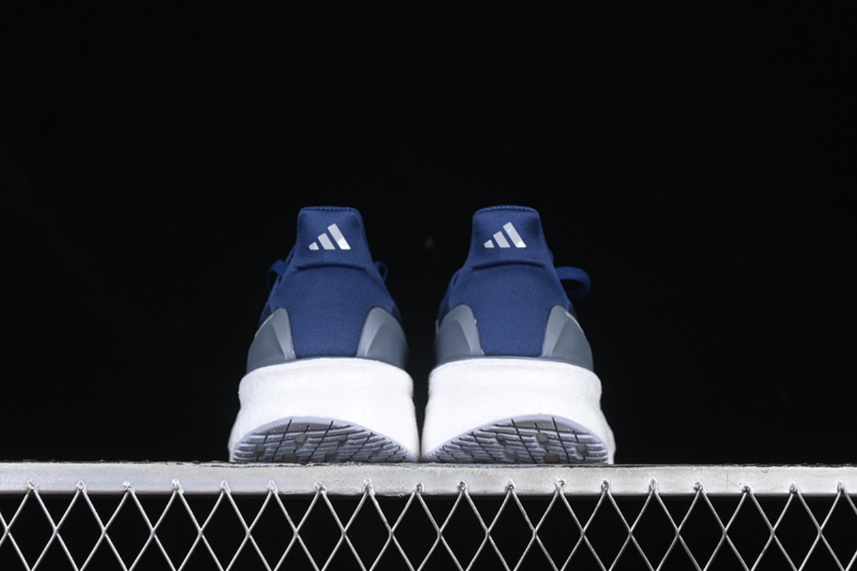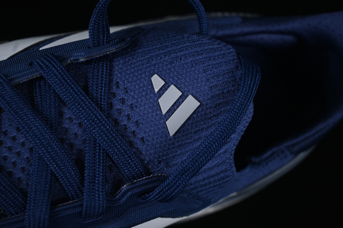 This is a stylish Adidas running shoe featuring a navy blue mesh upper, the iconic white three-stripe branding, and a thick cushioned sole for maximum comfort and support. Designed for both performance and everyday wear.