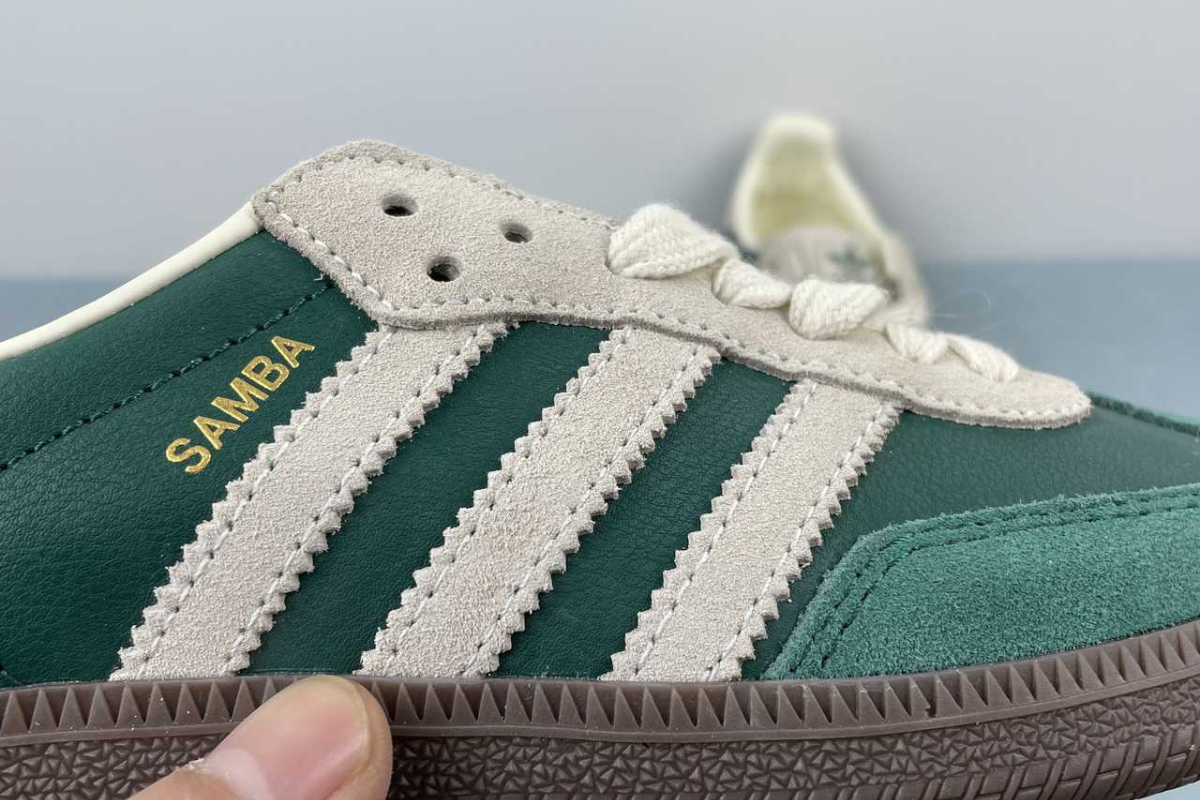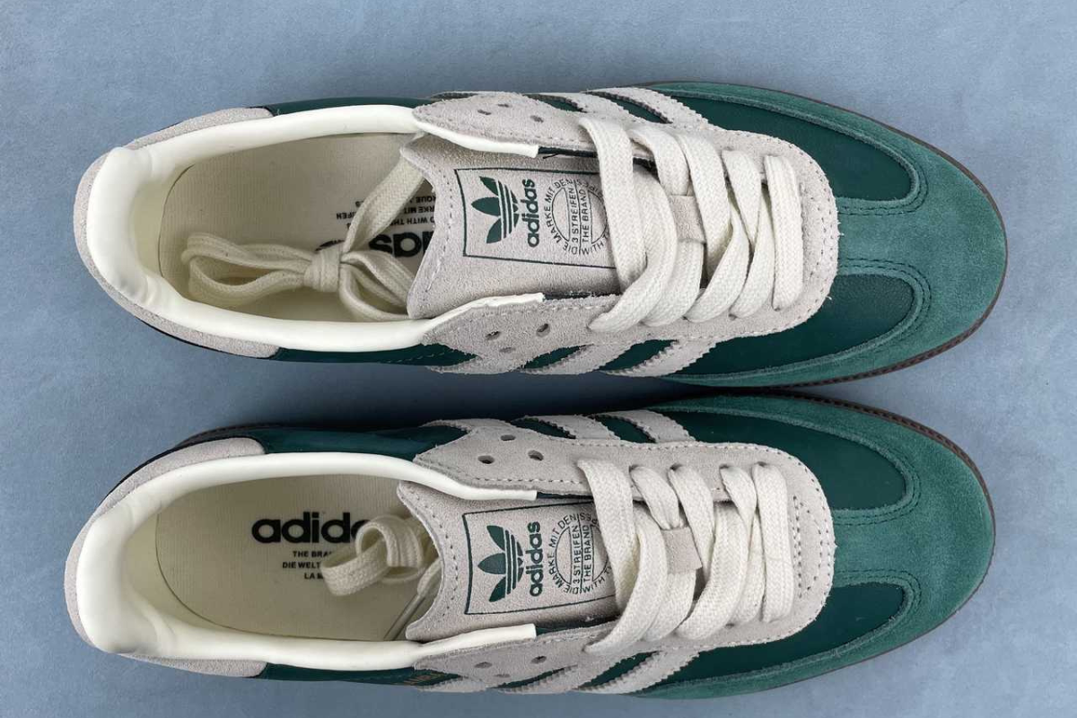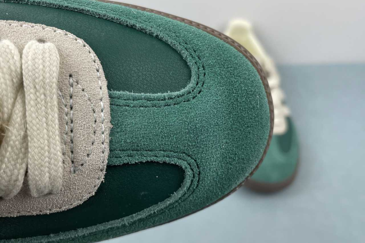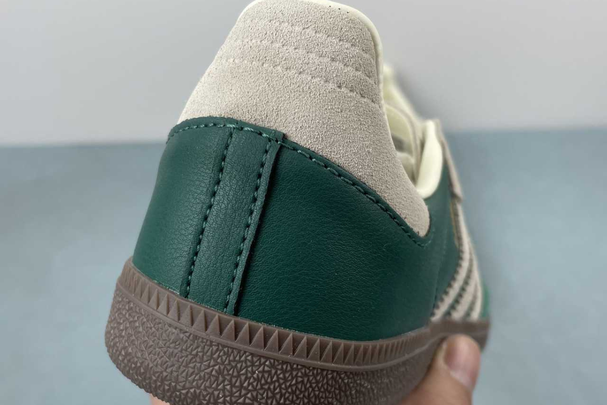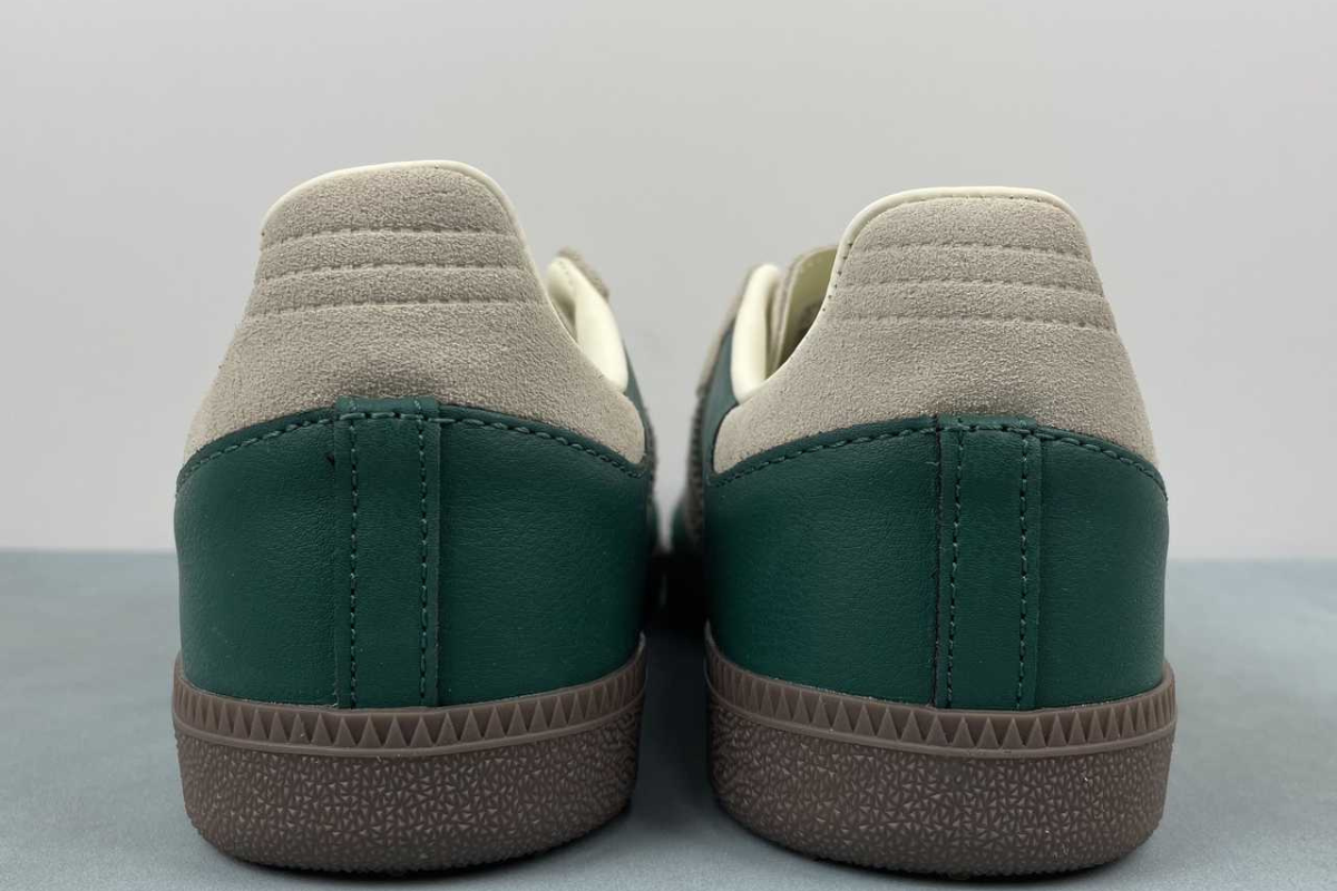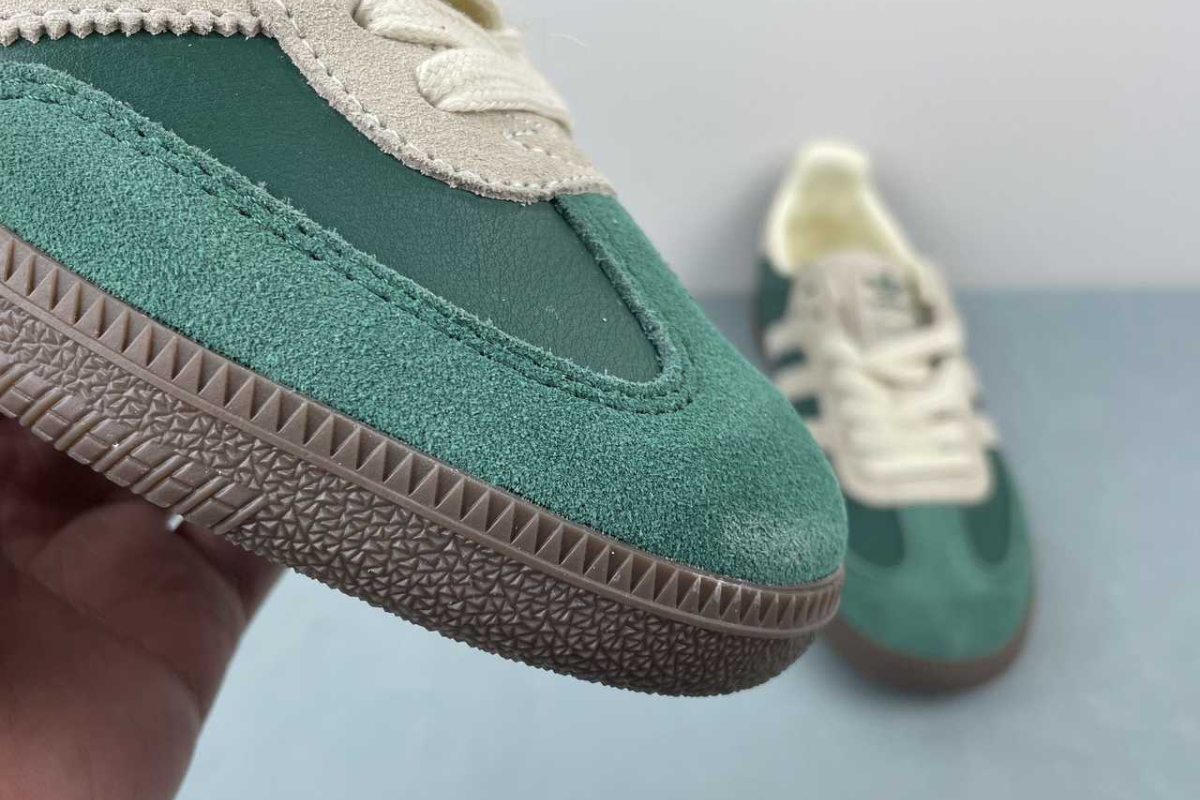 The Adidas Samba OG in Night Cargo Green brings a fresh twist to a timeless classic. Featuring a rich green leather and suede upper with off-white accents and a dark gum sole, it's a stylish blend of heritage and modern streetwear.