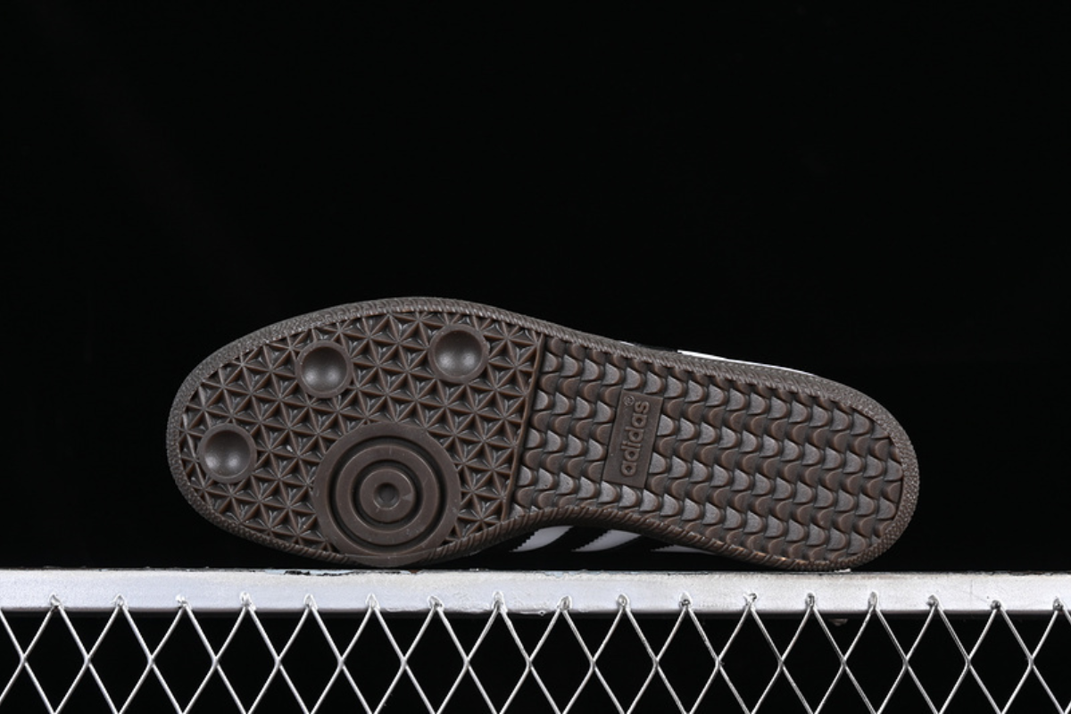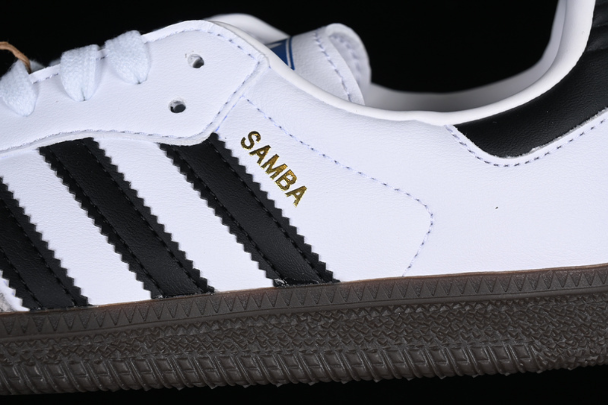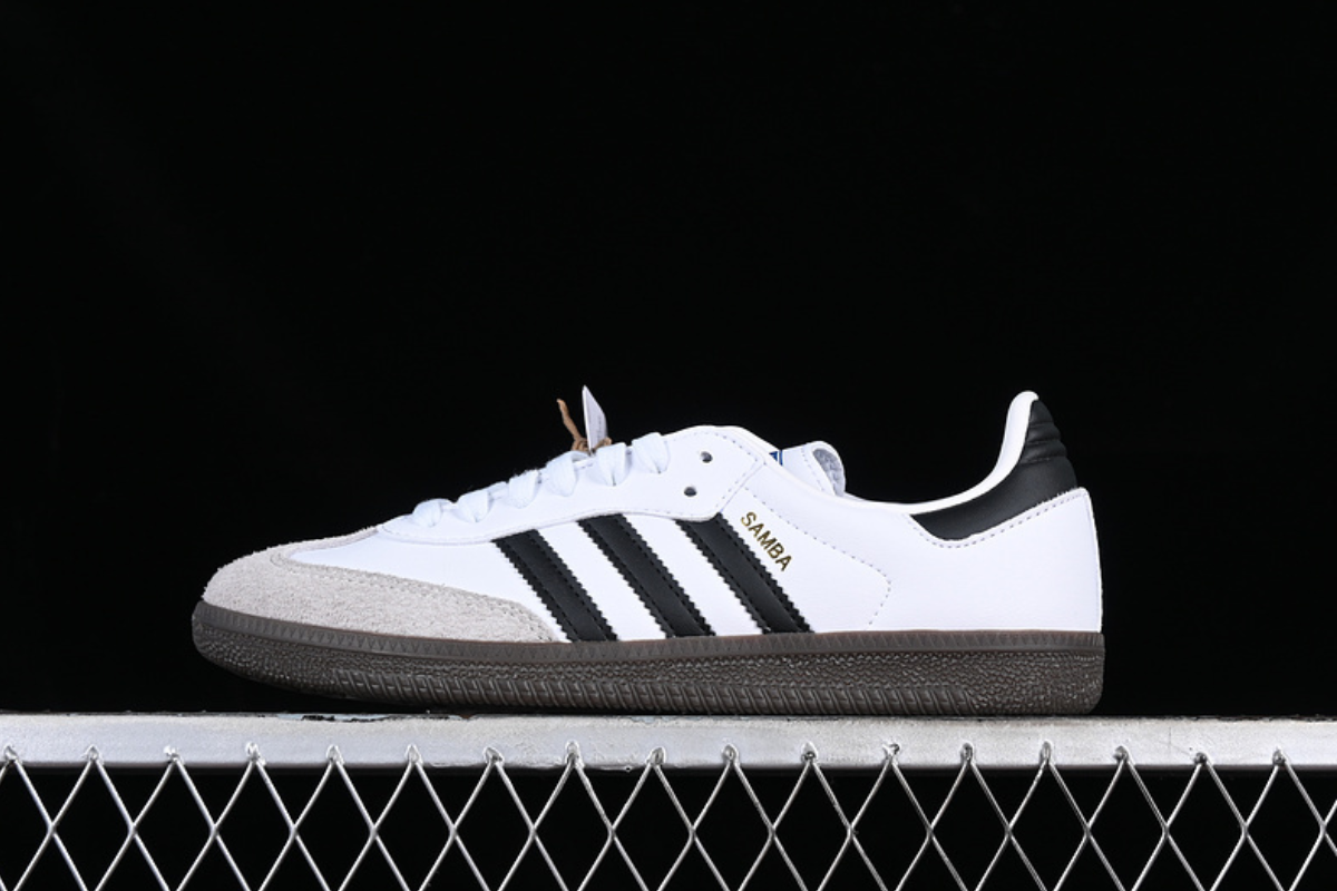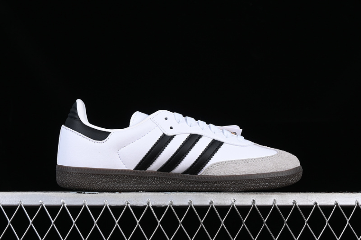 The Samba OG White/Black/Grey is a classic Adidas sneaker featuring a smooth white leather upper, iconic black Three Stripes, and a grey suede toe cap. Designed with a gum rubber sole for traction and style, it's a timeless silhouette perfect for casual wear.