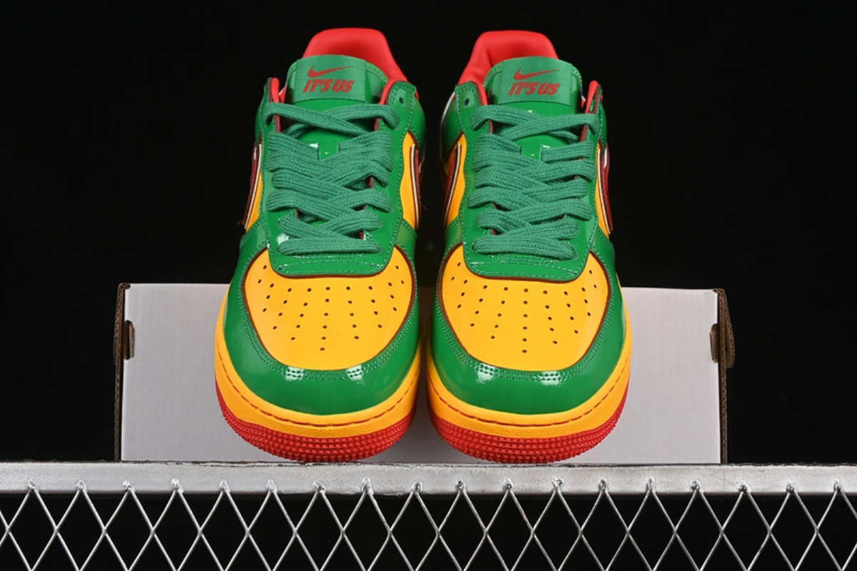 The Lil Yachty x Nike Air Force 1 Low Lucky Green Mystic Red is a bold and vibrant collaboration that blends streetwear flair with classic AF1 style. Featuring glossy Lucky Green uppers, Mystic Red Swooshes, and yellow accents, this sneaker captures Lil Yachty’s creative energy and the Concrete Boys aesthetic.