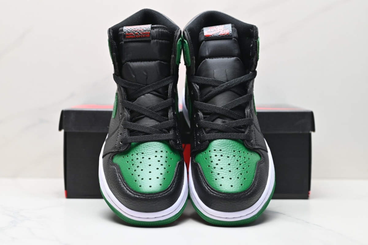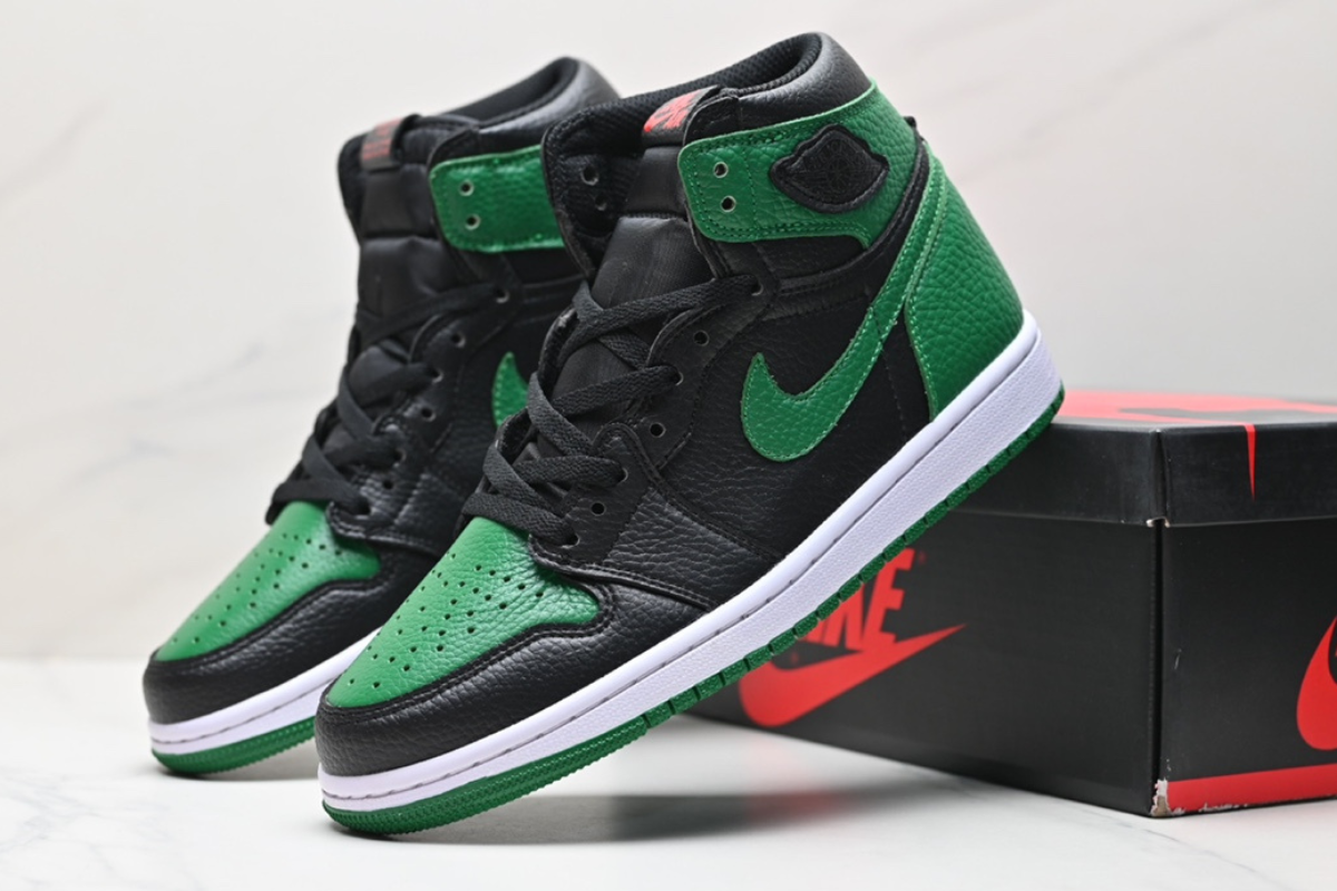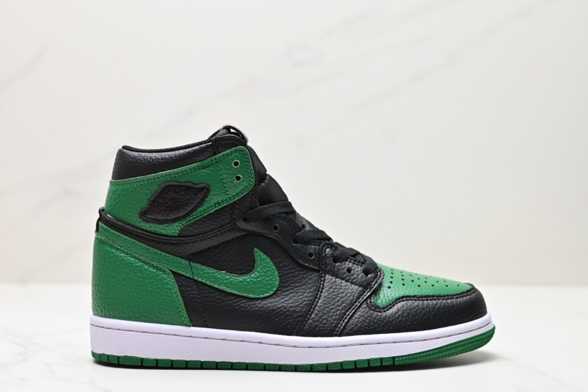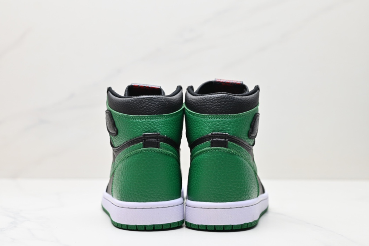 The Air Jordan 1 Retro High OG “Pine Green” features a bold black and green tumbled leather upper, offering a premium feel and standout contrast. Designed with the classic Air Jordan silhouette, it includes signature branding like the Wings logo on the collar and a Nike Air tag on the tongue. The white midsole and green outsole complete the look, delivering style and comfort for everyday wear or collector shelves.