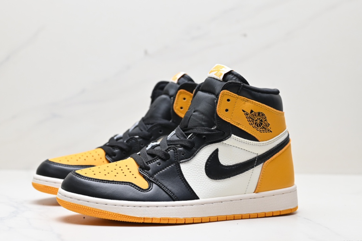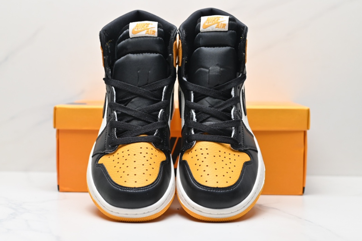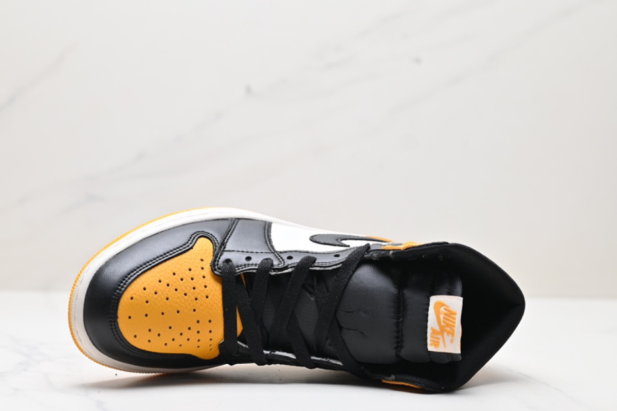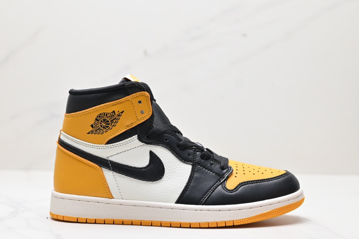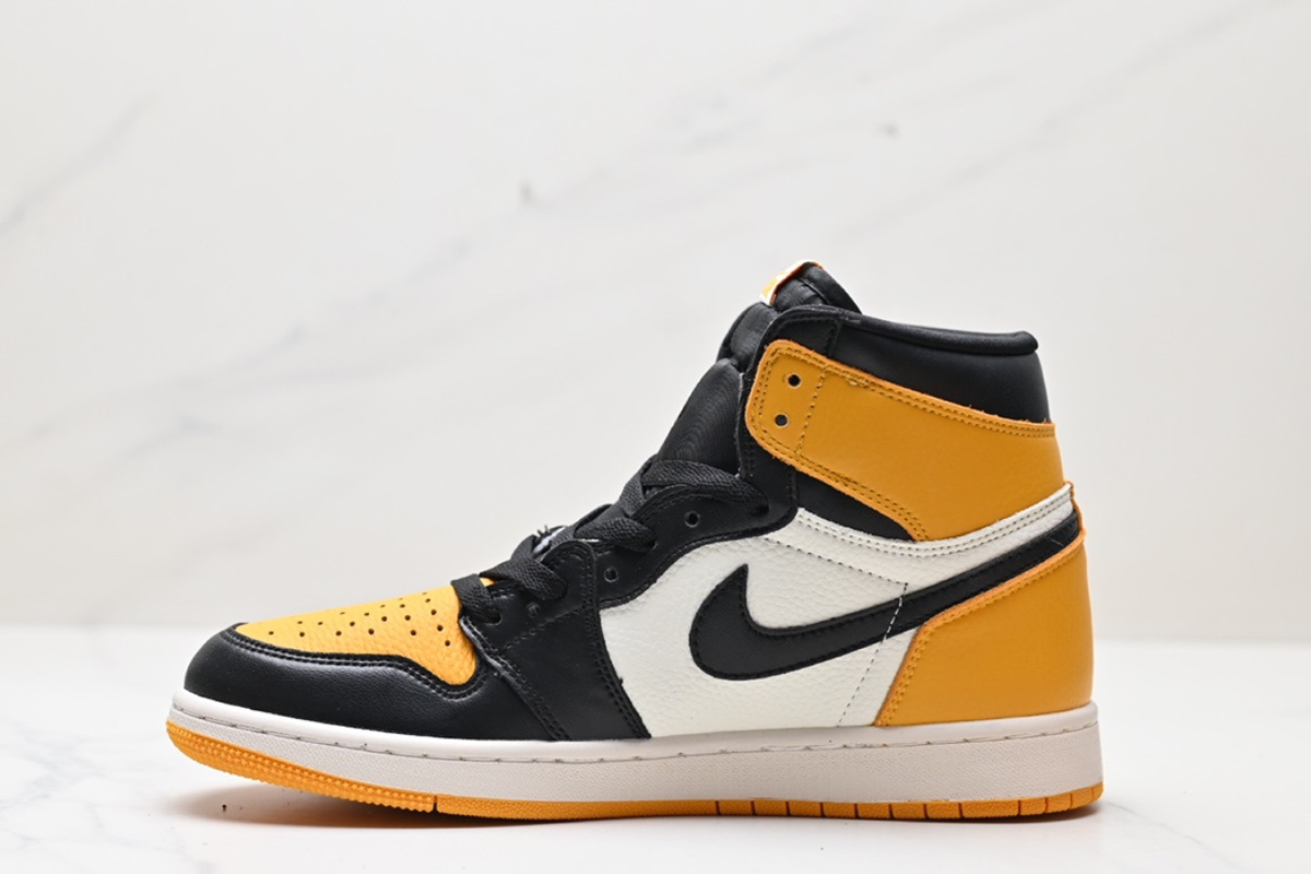 The Air Jordan 1 Retro High OG "Taxi" (Yellow Toe) features a striking black, white, and yellow colorway with premium leather construction. Inspired by the iconic "Black Toe" design, this sneaker combines heritage style with bold, modern flair, making it a standout choice for Jordan fans and sneakerheads alike.