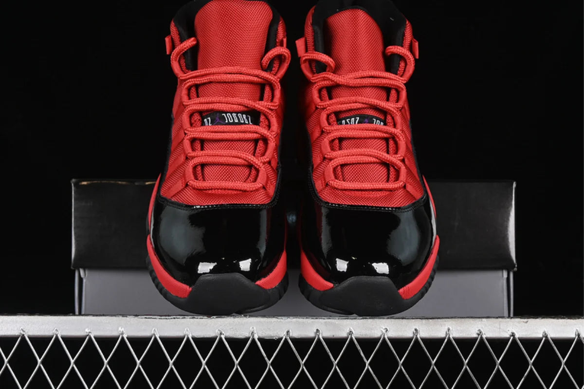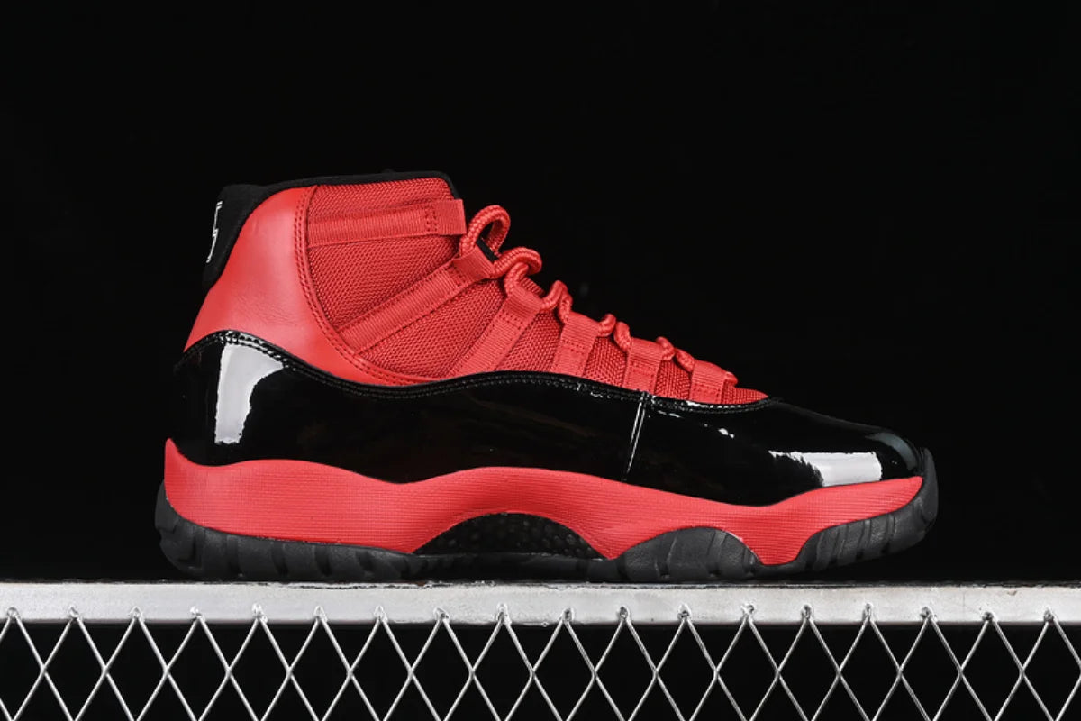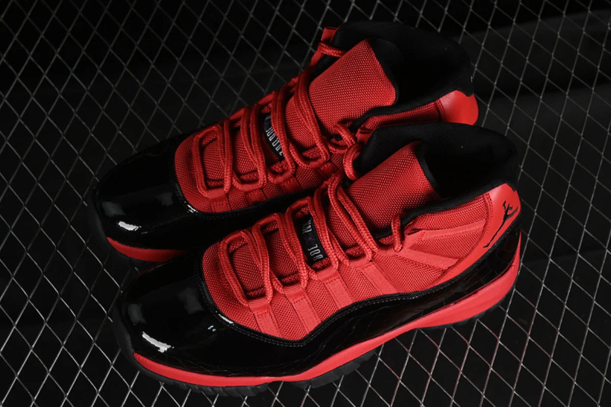 Turn heads with the Air Jordan 11 “Red Inferno Gloss”, a bold and modern twist on the iconic AJ11 silhouette. This striking edition pairs a vibrant red mesh upper with premium black patent leather wrapping the lower portion, creating a sharp contrast that delivers unmistakable style.