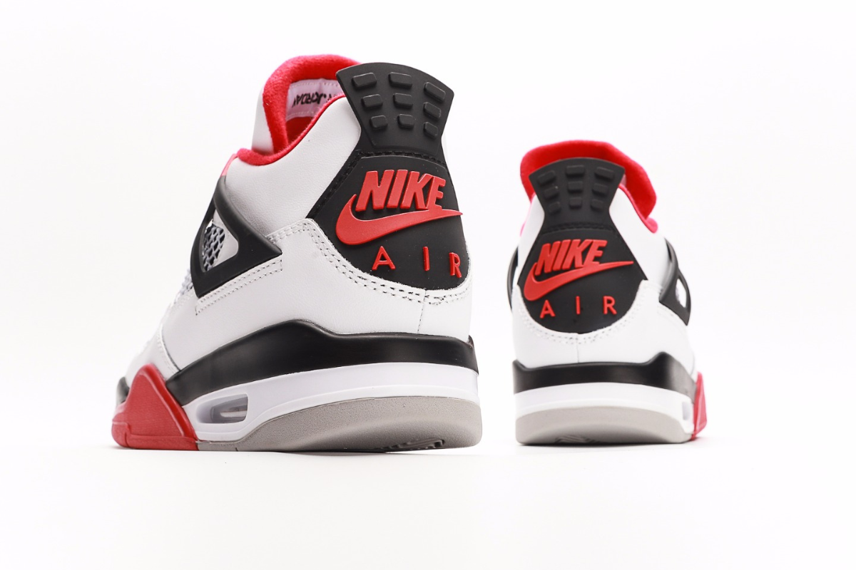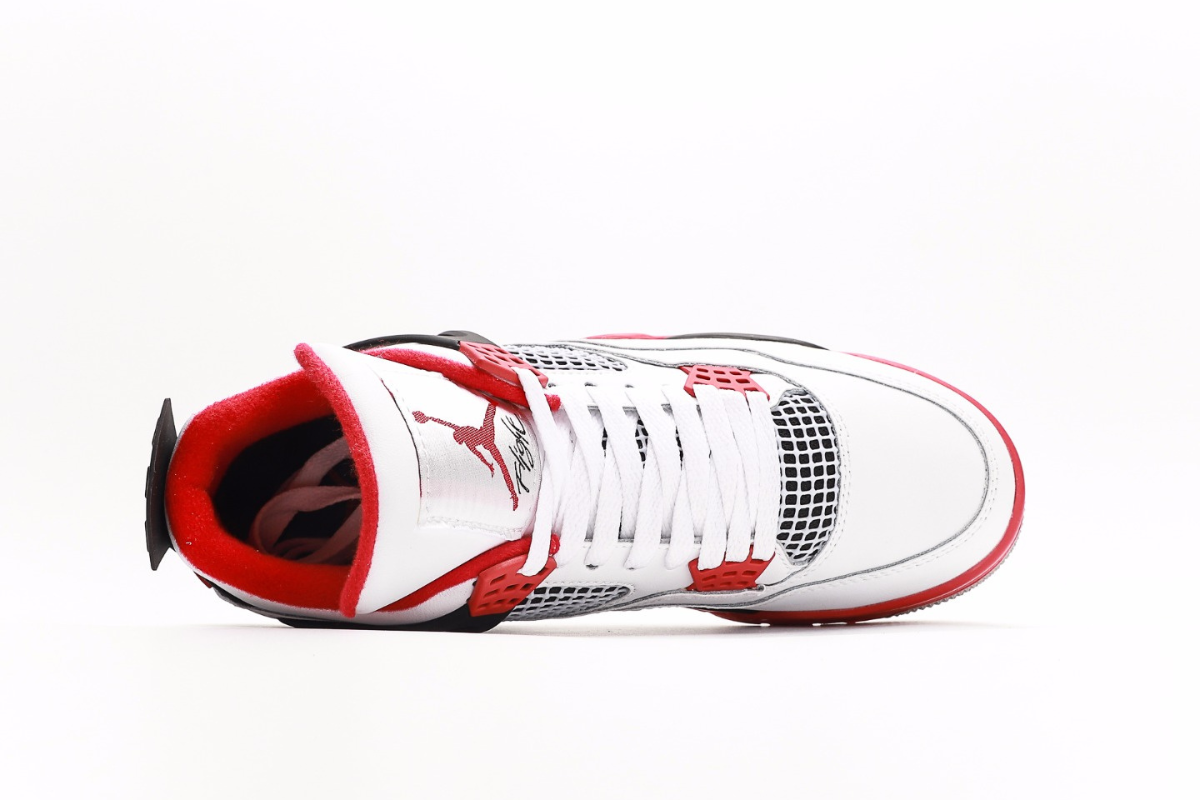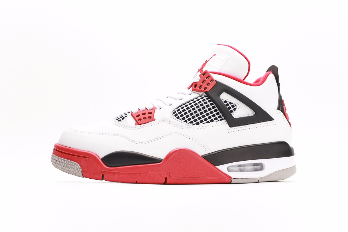 The Air Jordan 4 Retro 'Fire Red' features a crisp white leather upper accented with bold red and black details. A true classic in the Jordan lineup, combining heritage style with modern comfort.