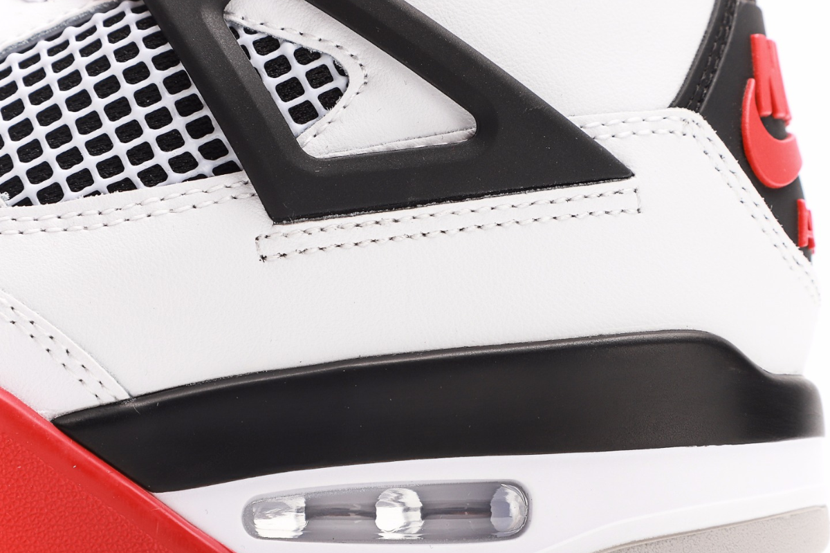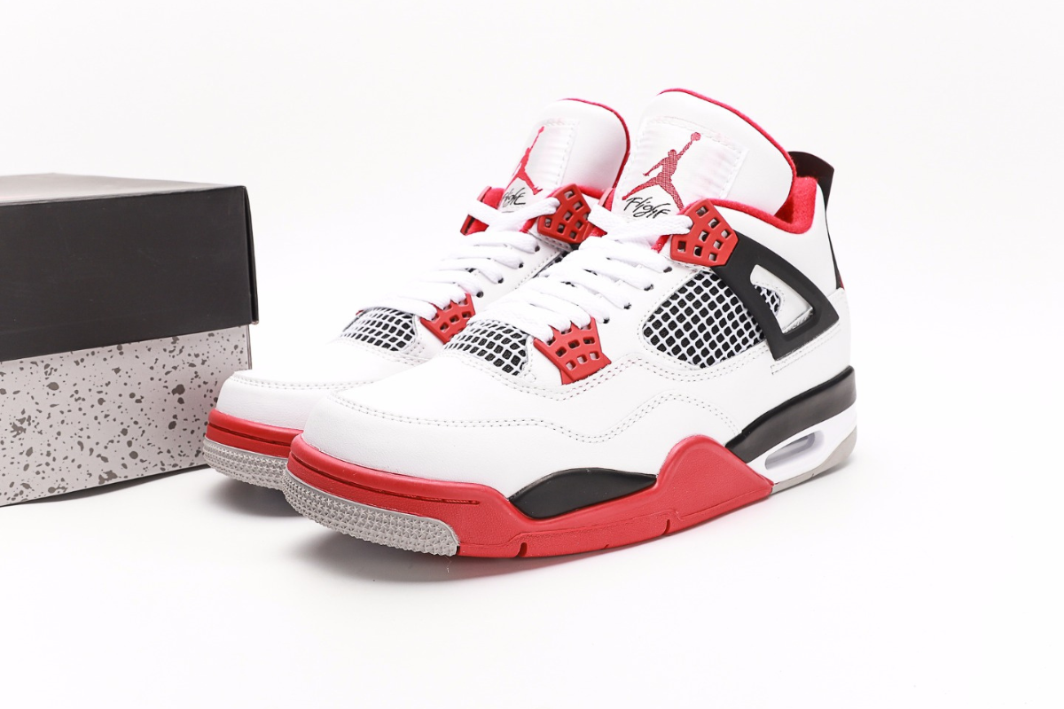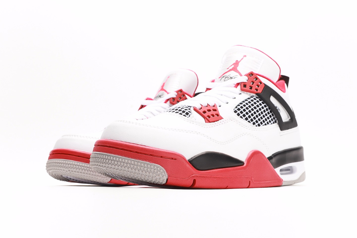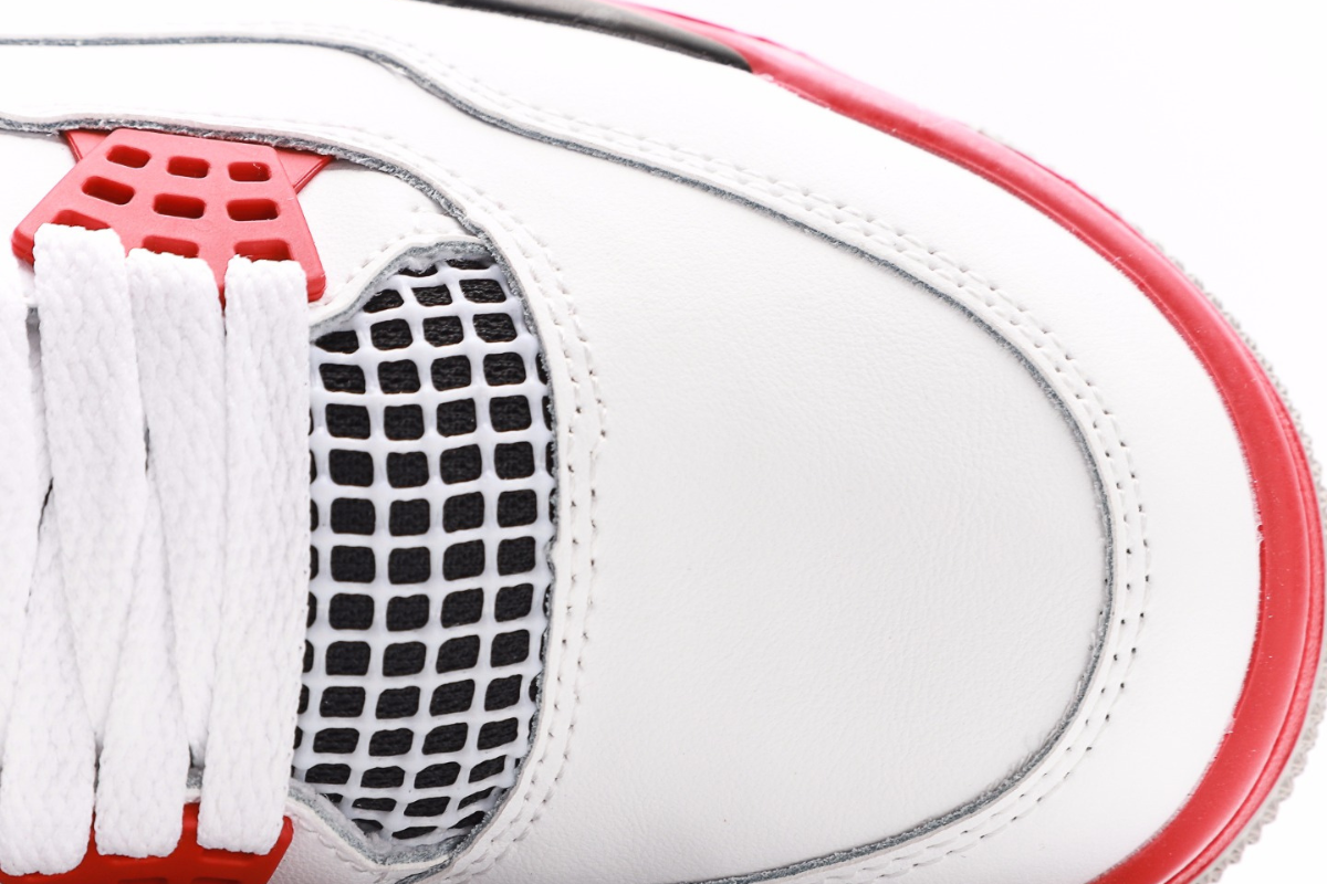 The Air Jordan 4 Retro 'Fire Red' features a crisp white leather upper accented with bold red and black details. A true classic in the Jordan lineup, combining heritage style with modern comfort.