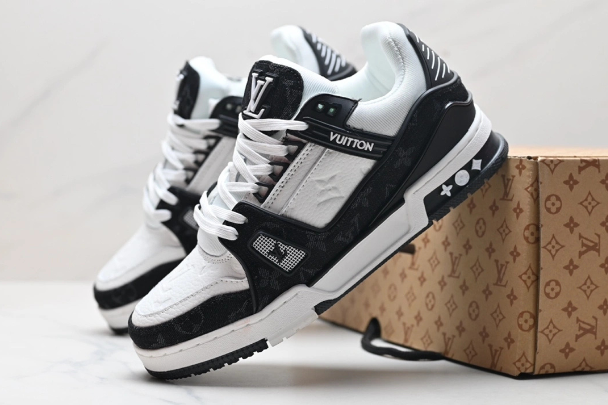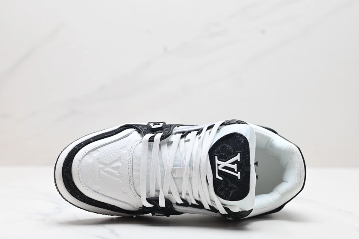 Crafted from premium black leather and suede, the LV Trainer Sneaker combines high-fashion design with sporty appeal. Featuring iconic LV details and a sleek all-black finish, it delivers bold style and everyday comfort.