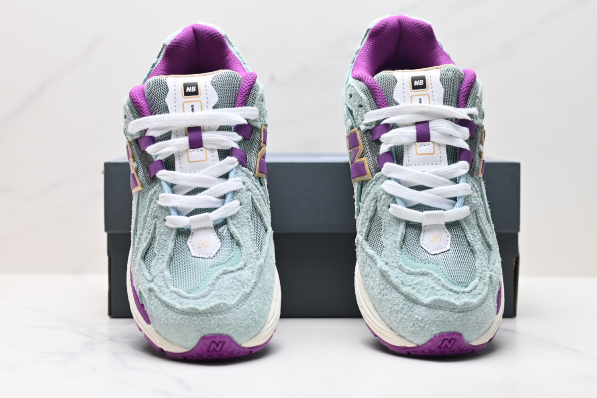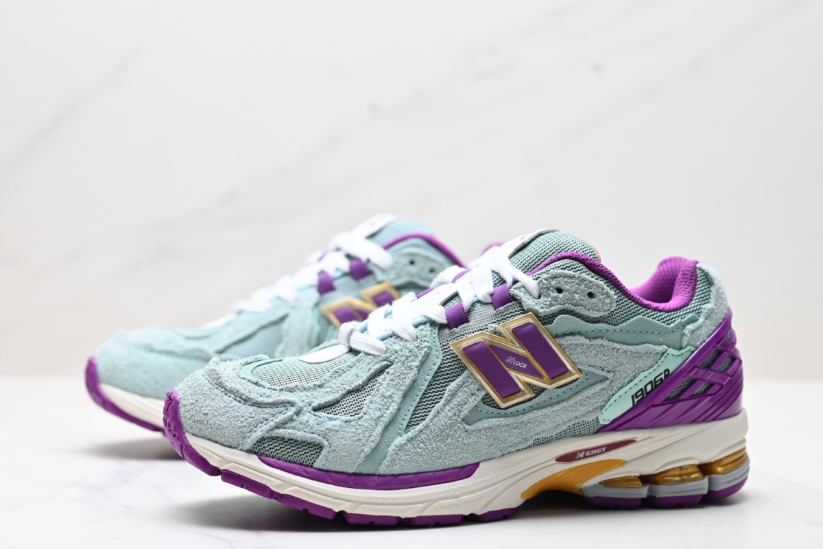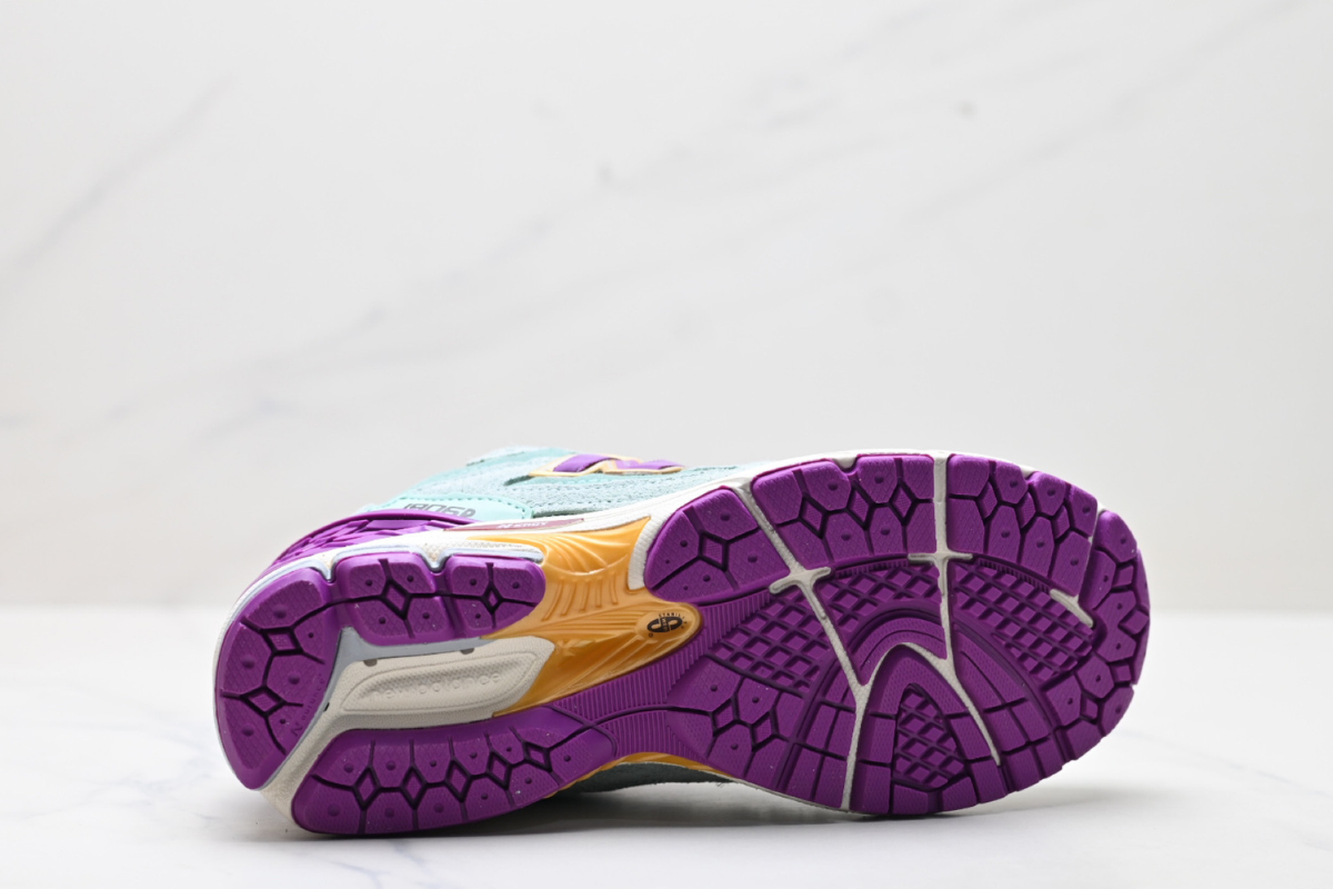 The New Balance 1906R Aqua Purple blends vintage running design with vibrant modern tones. Featuring a mix of suede and mesh in aqua and lilac with bold purple and yellow accents, this sneaker offers both comfort and standout style. N-ERGY cushioning and ABZORB tech ensure all-day performance and support.