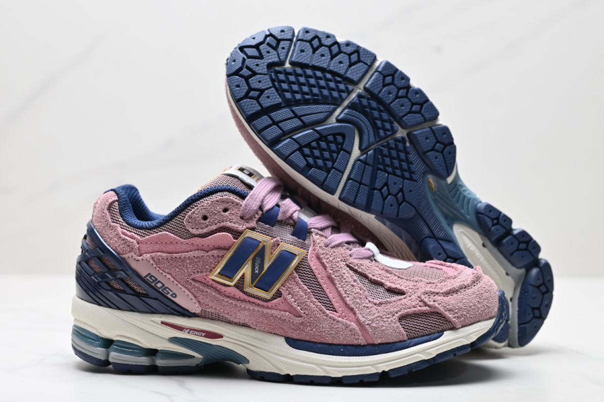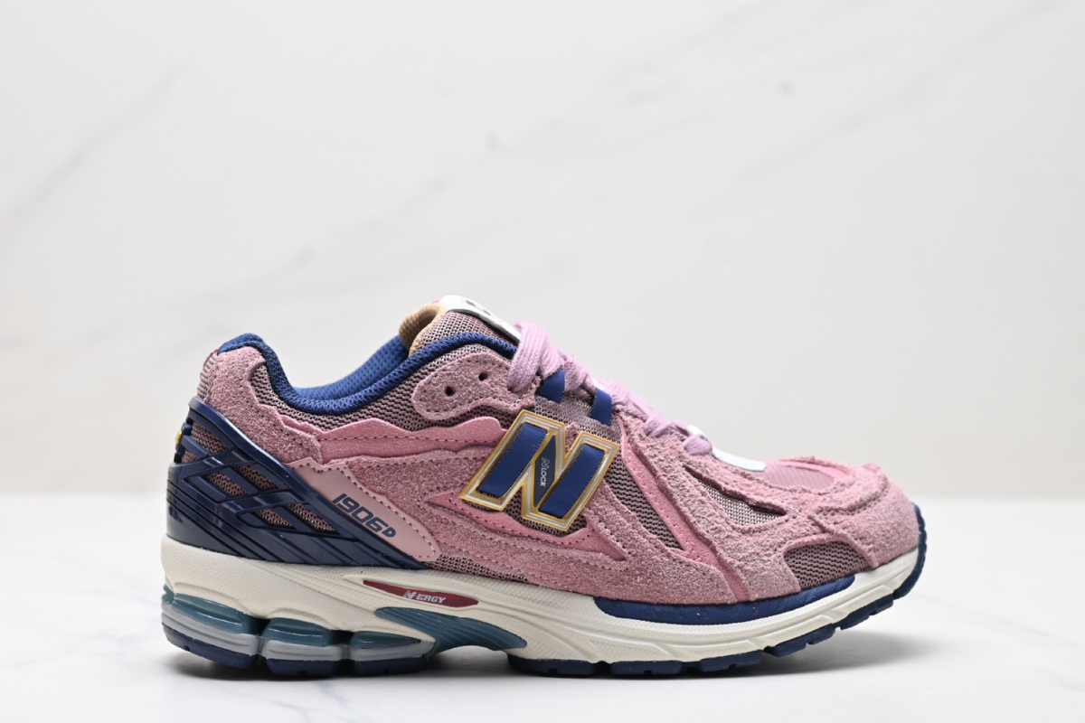 This is the New Balance 1906R in a bold pink suede and mesh combination, accented with navy and gold details. Blending retro aesthetics with modern performance, it features N-ergy cushioning for all-day comfort and standout streetwear style.