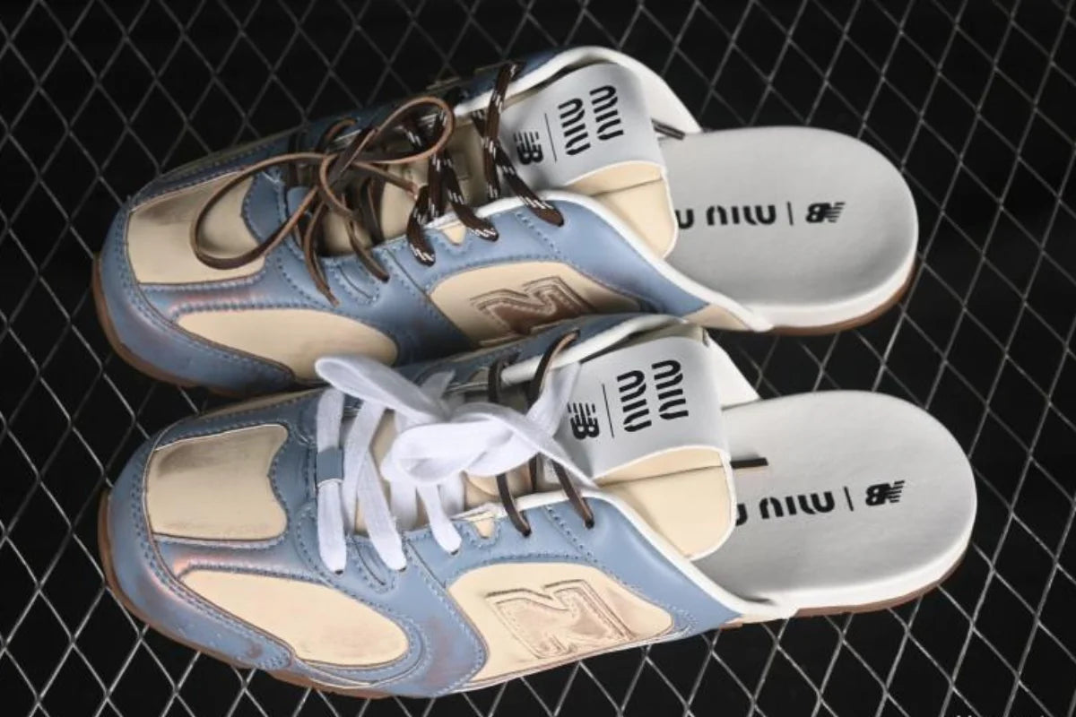 The iconic Miu Miu x New Balance 530 Series Low reimagined as a stylish sneaker mule. This design blends luxury fashion with New Balance’s sporty heritage, featuring premium materials, a soft cushioned sole, and an open-back slip-on style for effortless wear. The blue and beige colorway adds a clean, modern touch—perfect for casual looks with a high-fashion edge. Comfortable, lightweight, and statement-making for everyday wear.