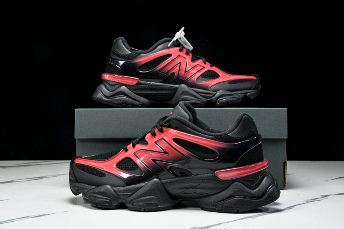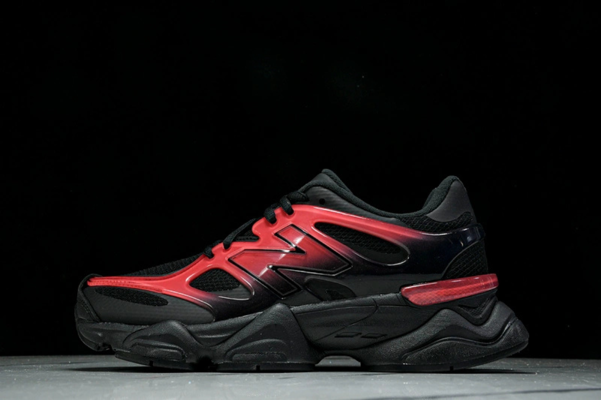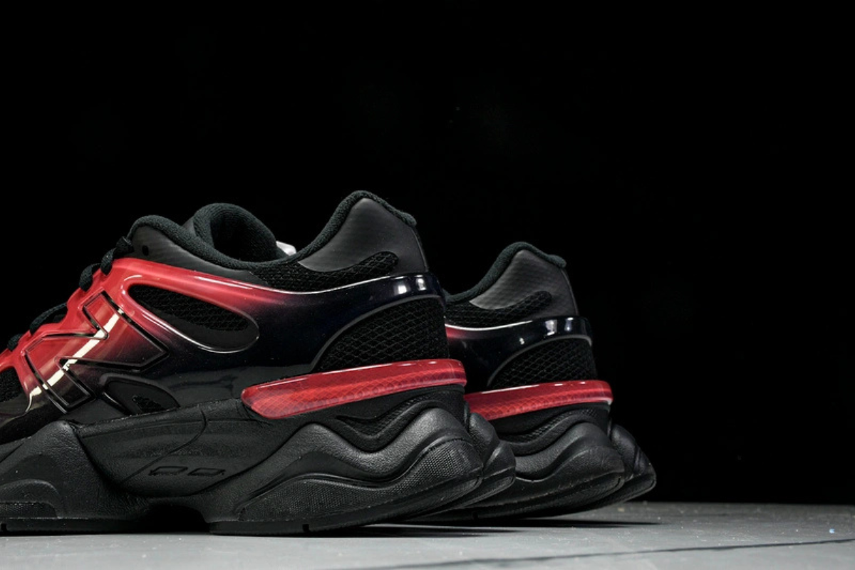 A bold twist on a classic silhouette, the New Balance 9060 Black Red Gradient features a sleek black upper with striking red gradient accents. Perfect for street style and everyday comfort.