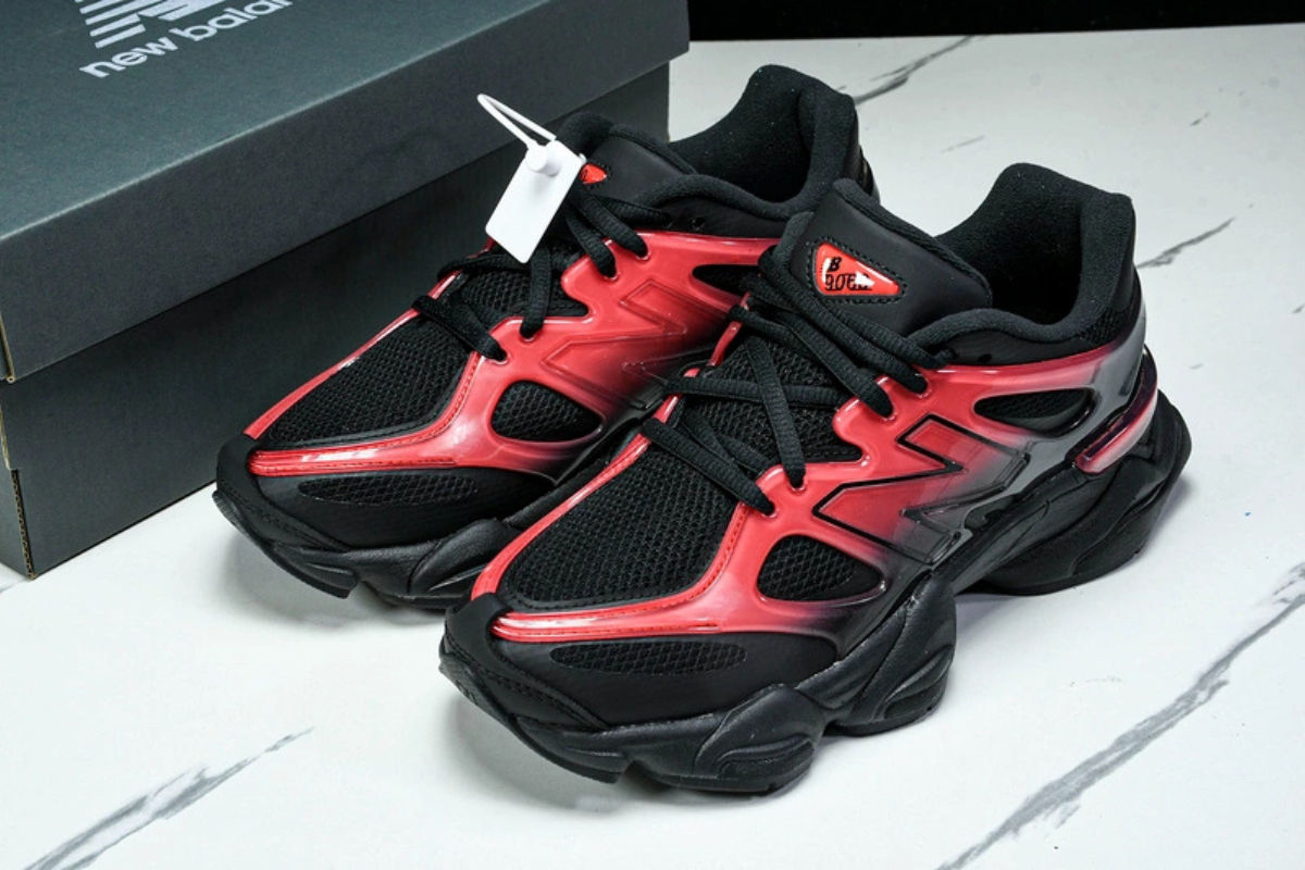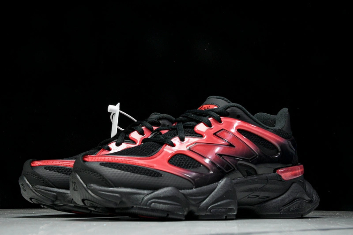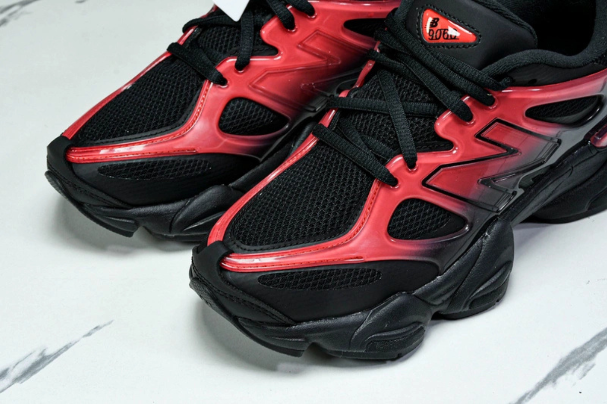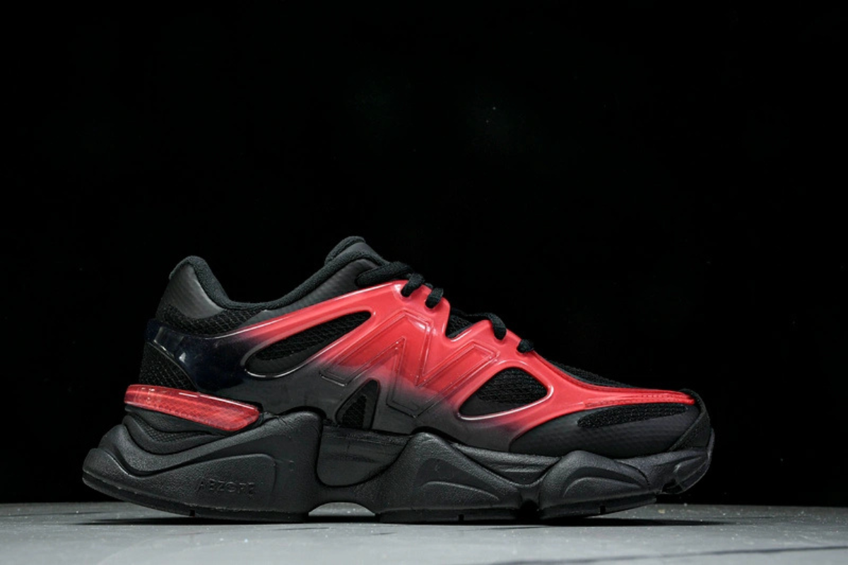 A bold twist on a classic silhouette, the New Balance 9060 Black Red Gradient features a sleek black upper with striking red gradient accents. Perfect for street style and everyday comfort.