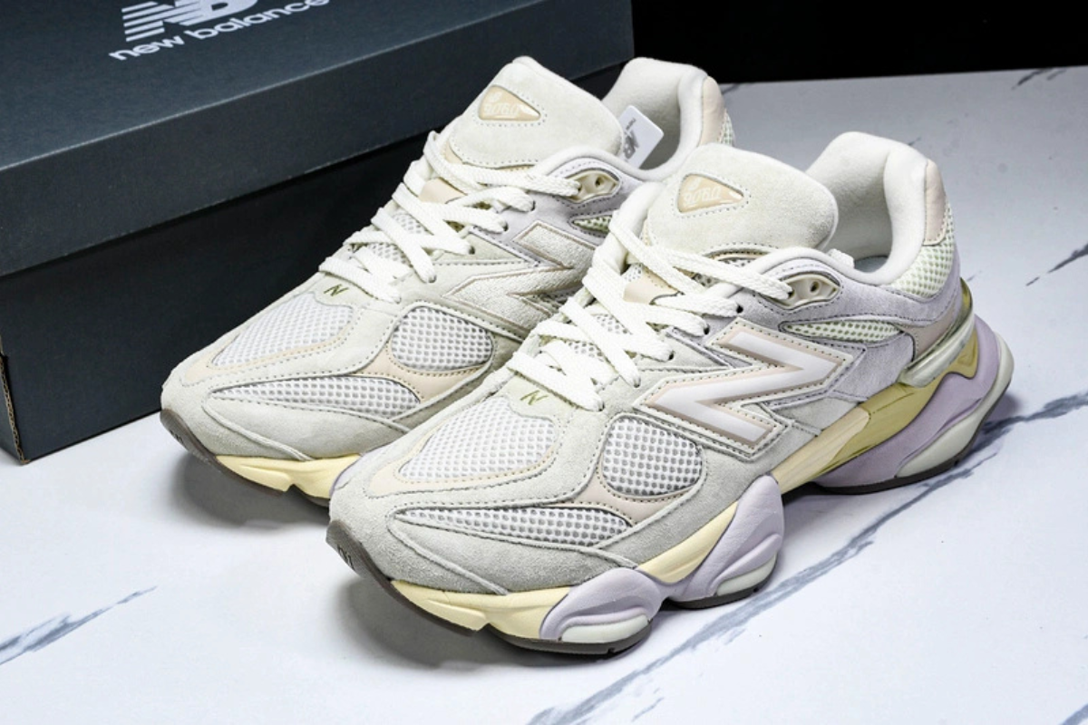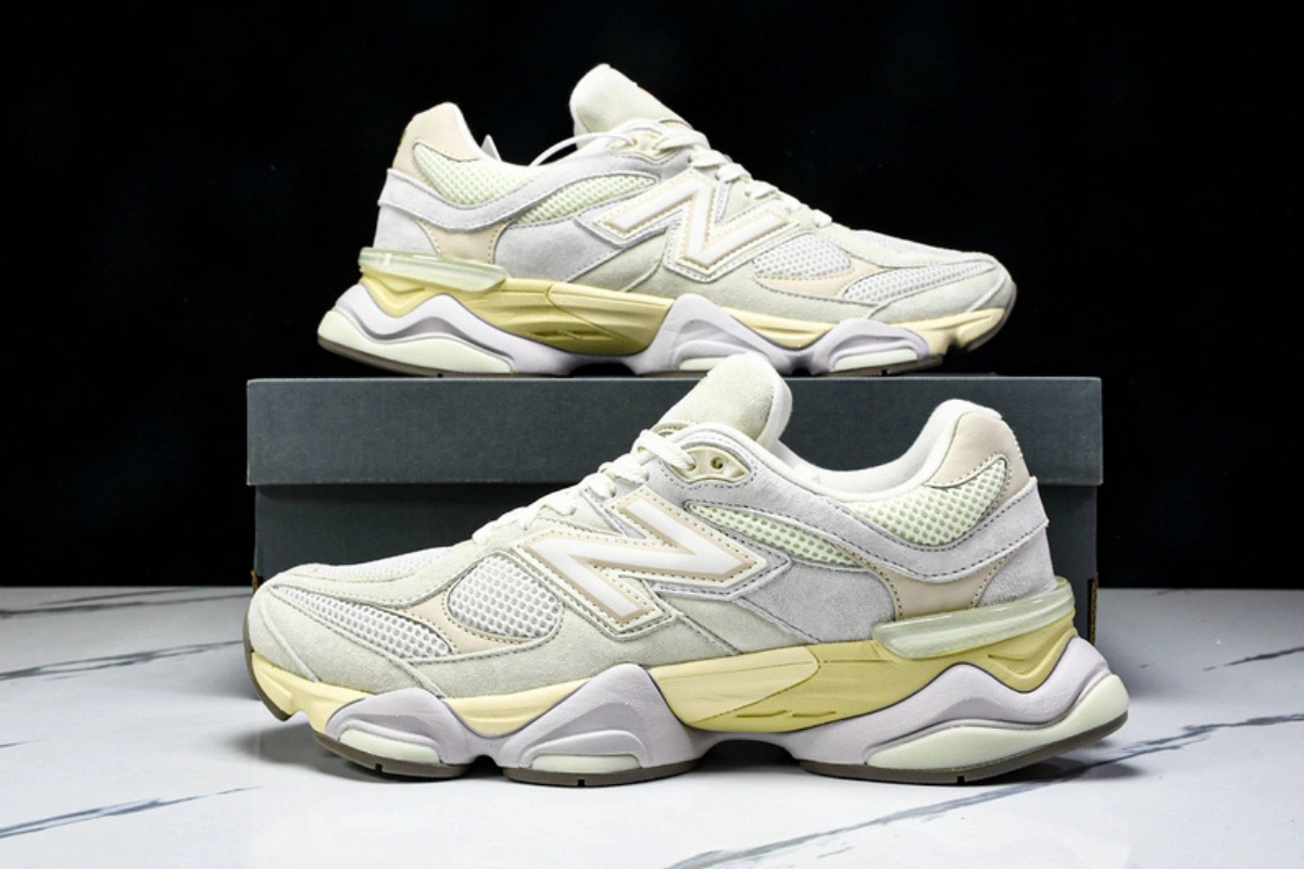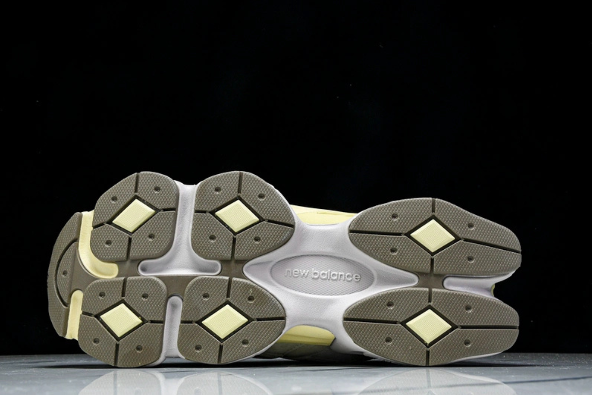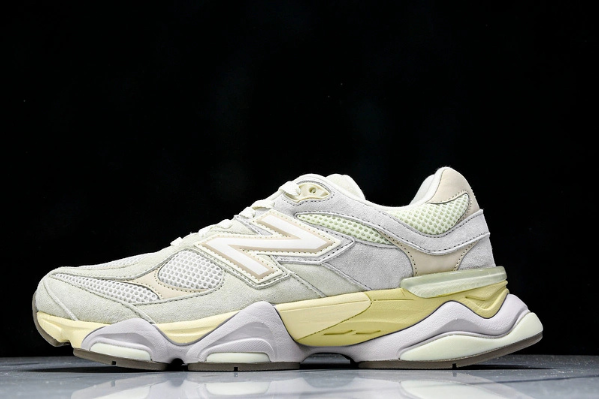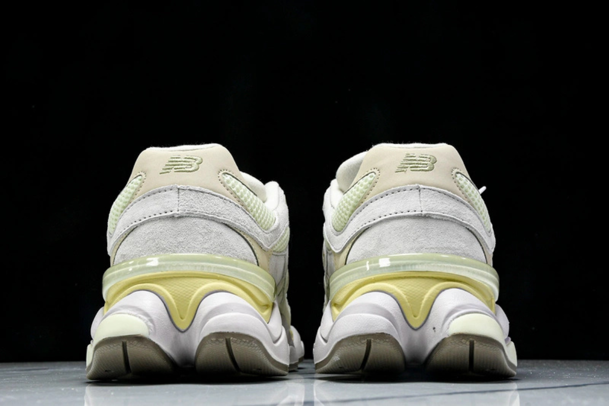 The New Balance 9060 Grey/Light Yellow combines retro-futuristic design with soft, airy tones. Featuring a suede and mesh upper in light grey with subtle yellow accents, it delivers style and comfort through ABZORB cushioning and a sculpted chunky midsole—perfect for everyday wear.