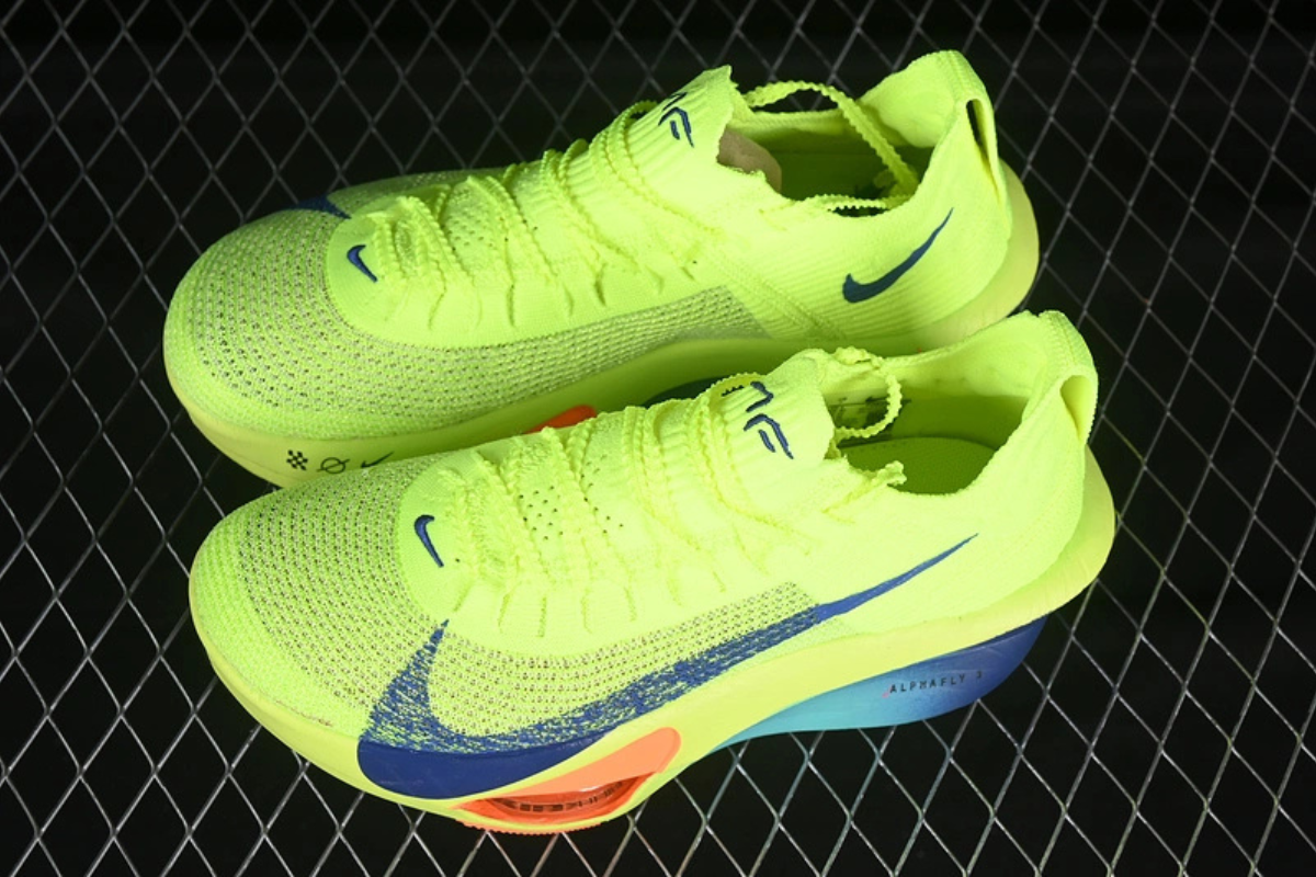 The Nike Air Zoom Alphafly NEXT% 3 "Volt" is built for elite speed and endurance, featuring a bright neon Volt Flyknit upper, dual Zoom Air units, and a full-length ZoomX foam midsole. Designed for race-day performance, it delivers maximum energy return, lightweight comfort, and a bold, standout look.