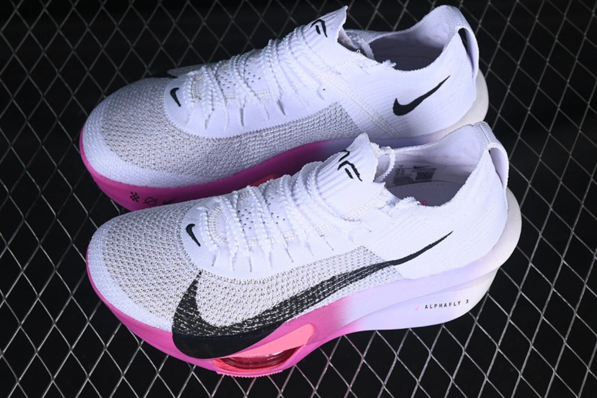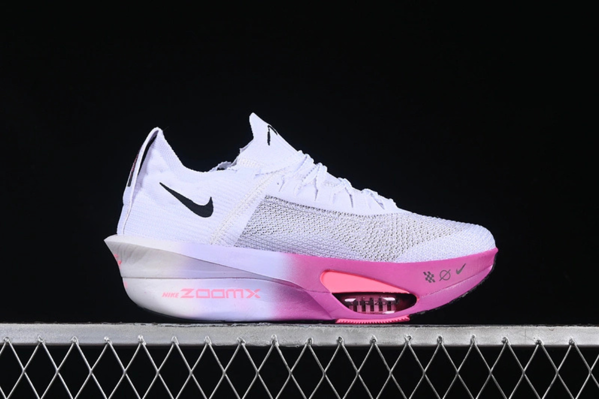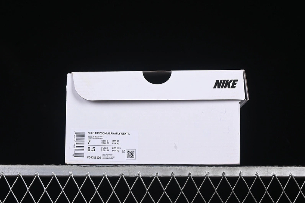 The Air Zoom Alphafly NEXT% 3 White/Purple Agate is a high-performance racing shoe designed for elite runners. It features Zoom Air pods, a full-length ZoomX foam midsole, and a carbon fiber plate for maximum energy return. The lightweight upper in white with purple agate accents offers a breathable and secure fit, perfect for marathon distances.
