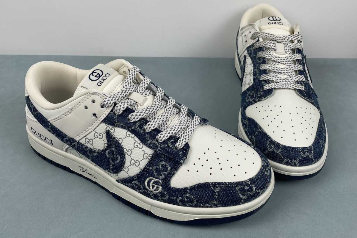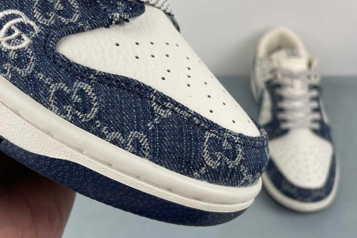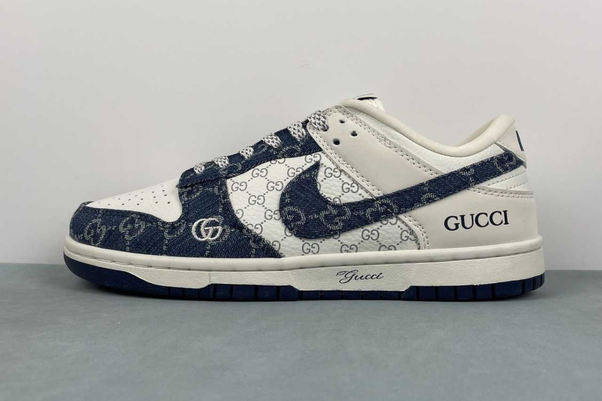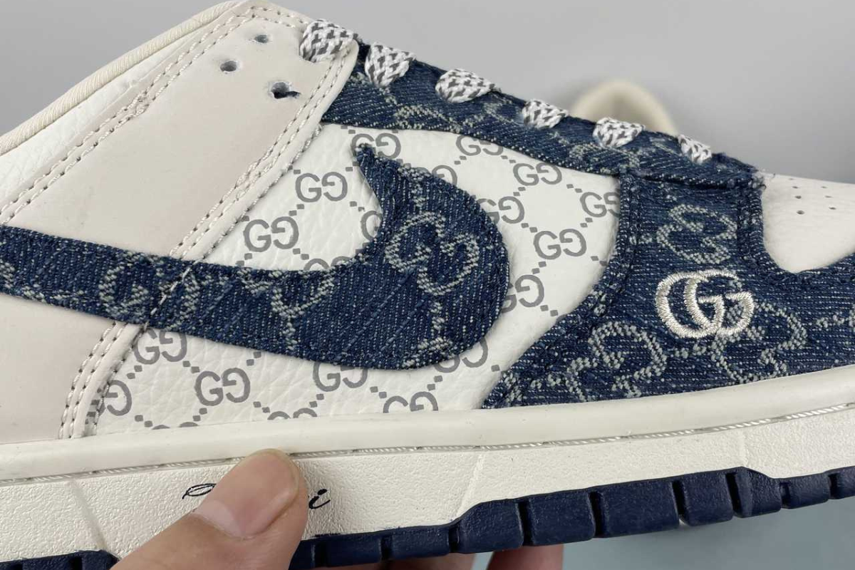 The Nike Dunk Low x Gucci Inspired Denim Sneakers combine classic Dunk style with luxury fashion flair. Featuring premium denim fabric and Gucci-inspired colors and patterns, this custom pair offers a bold, high-end twist on a streetwear staple.