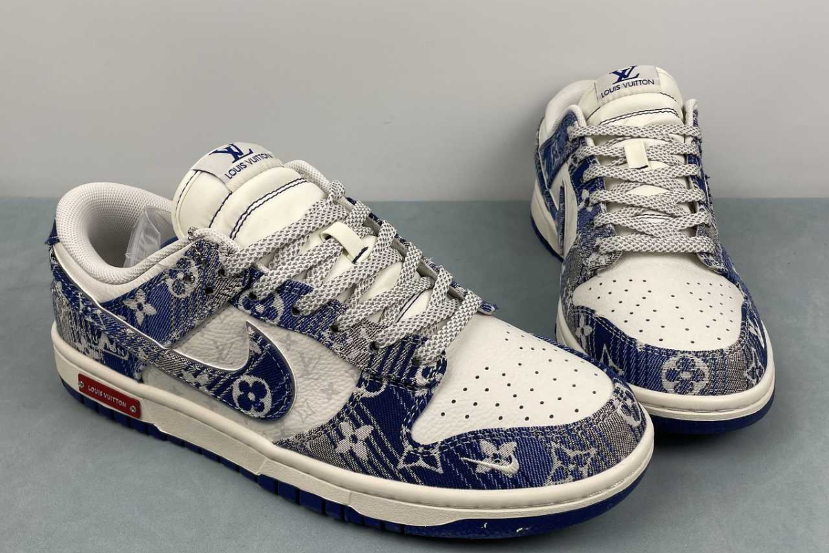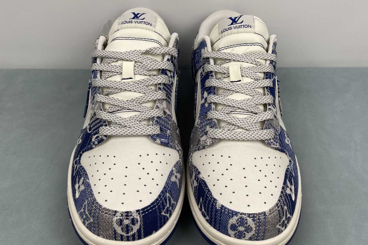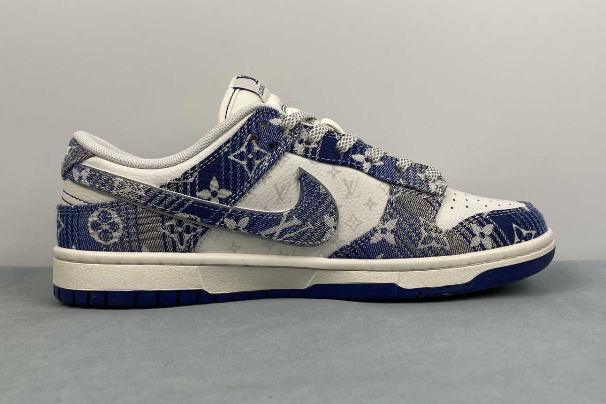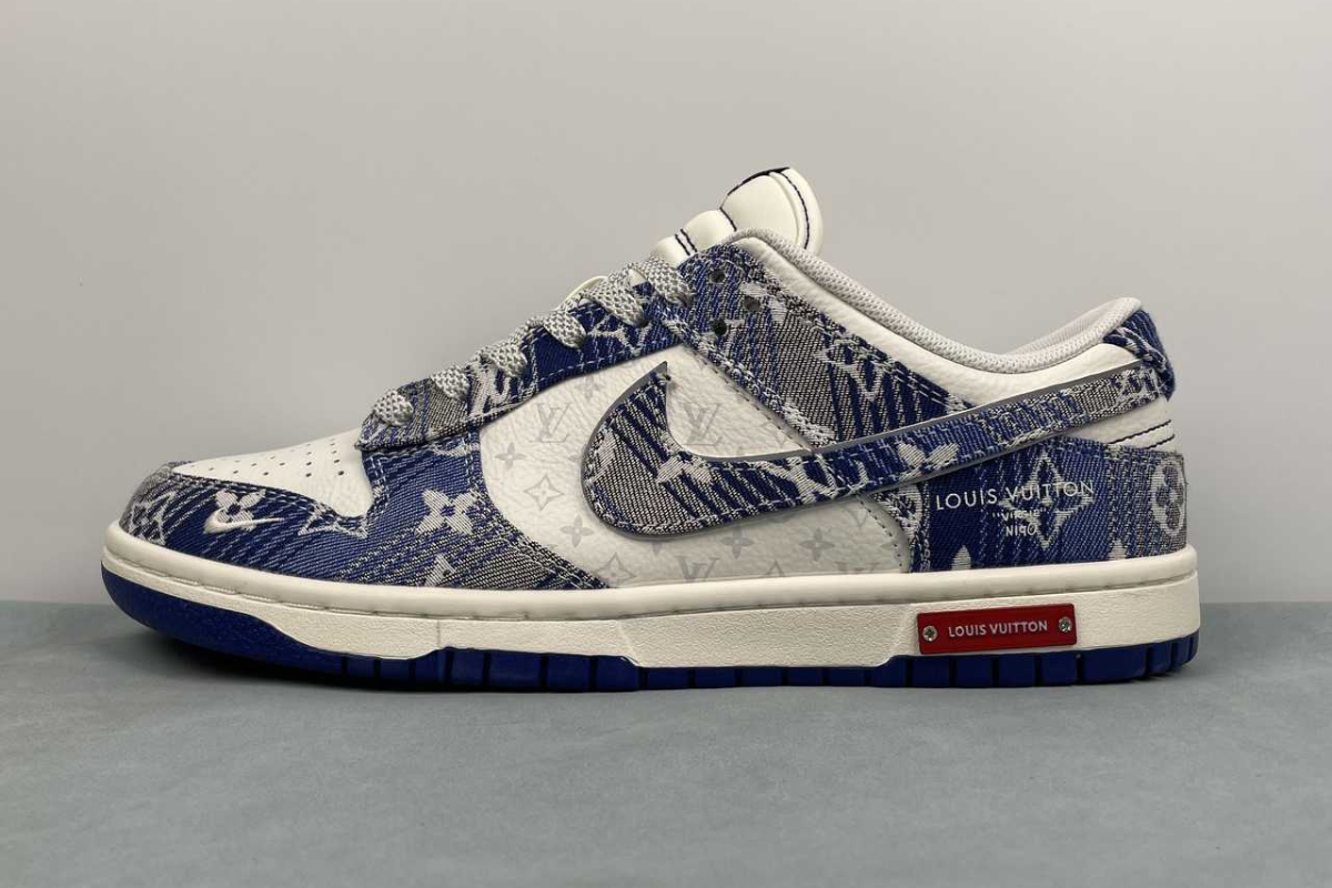 The Nike Dunk Low x Louis Vuitton "Blue" is a luxury custom sneaker that blends the classic Dunk Low silhouette with Louis Vuitton's iconic blue monogram denim design. This stylish collaboration stands out with premium materials and bold branding, making it a must-have for fashion-forward sneaker collectors.