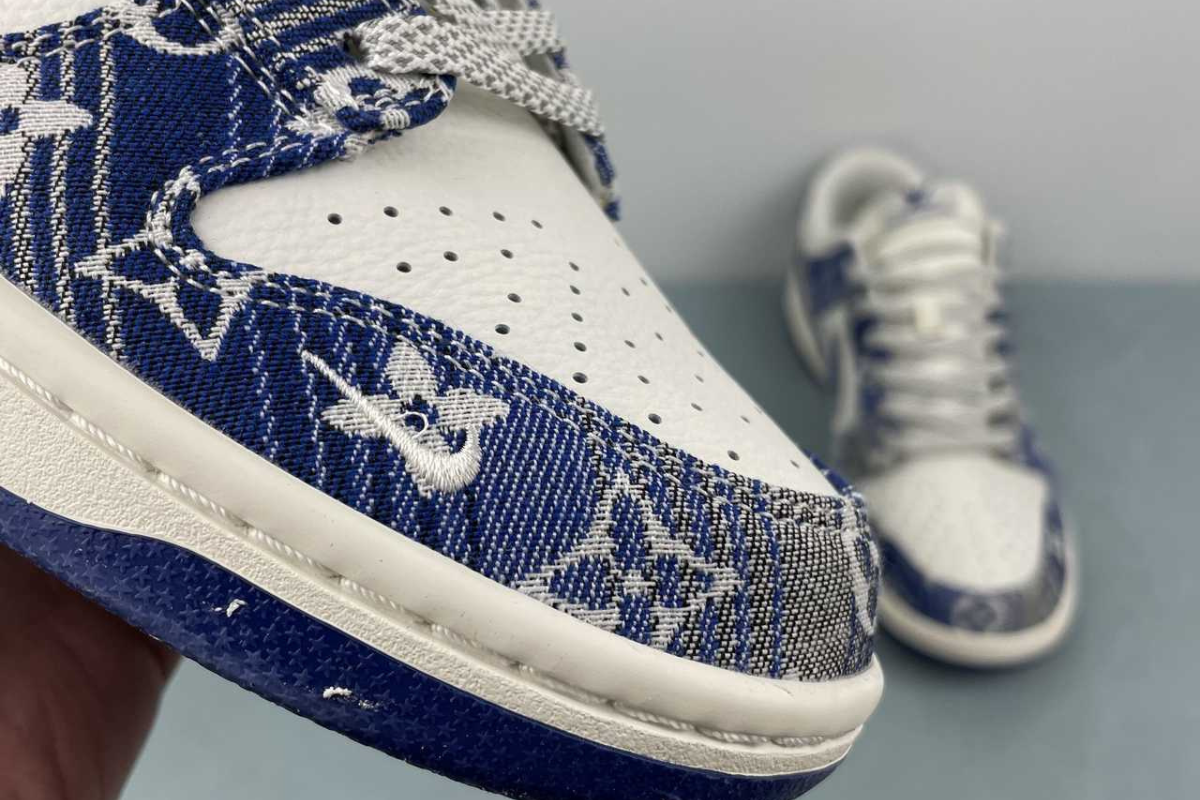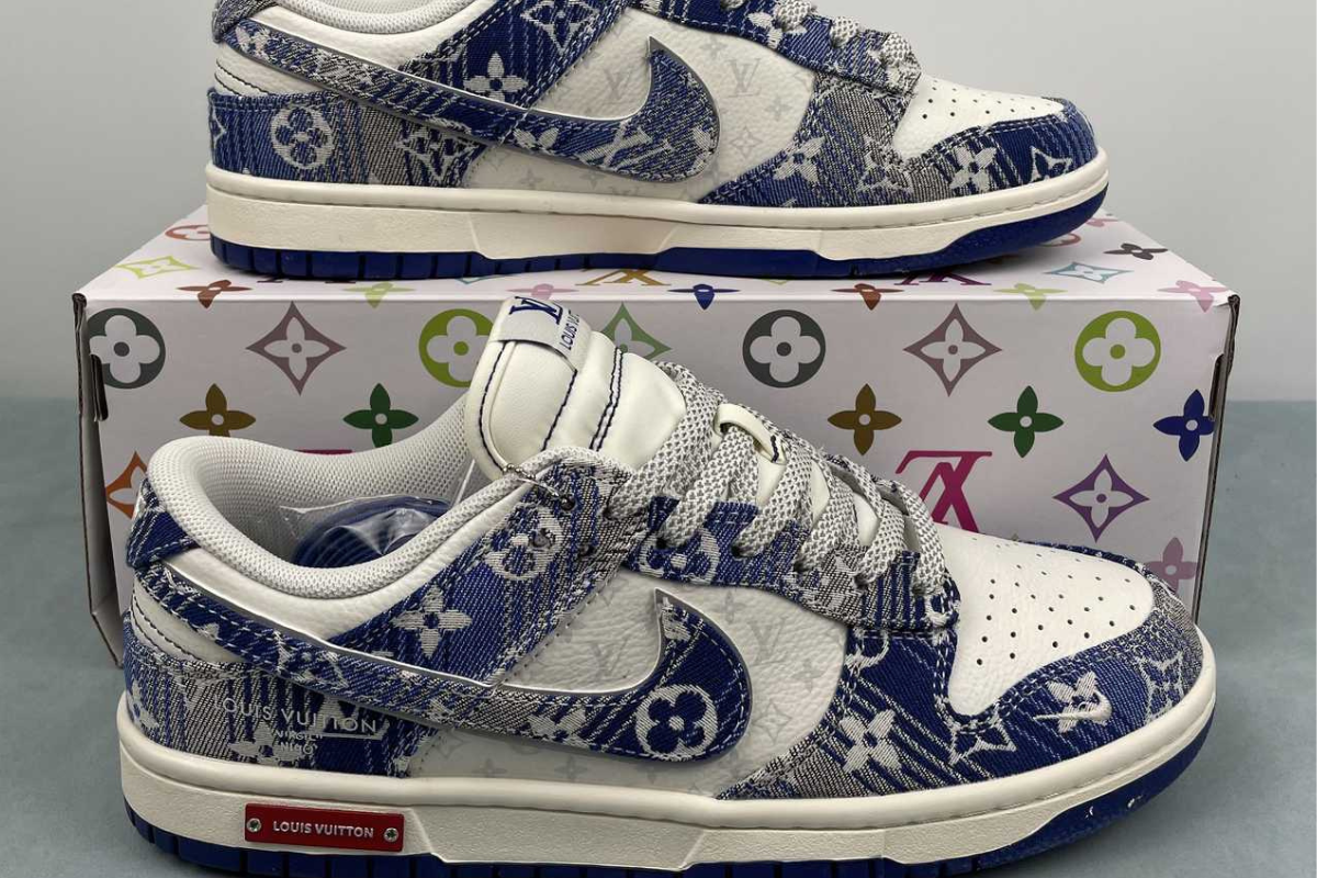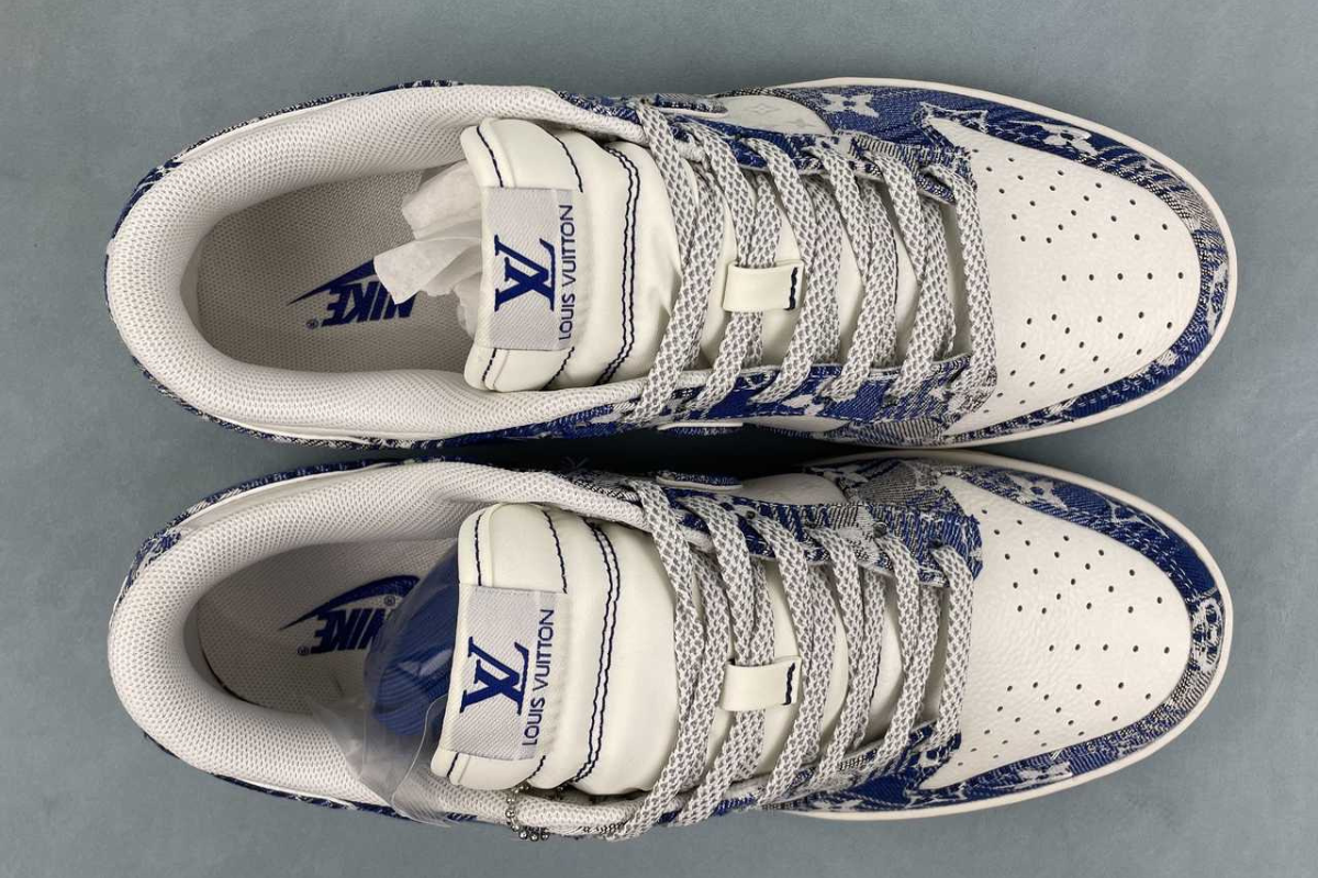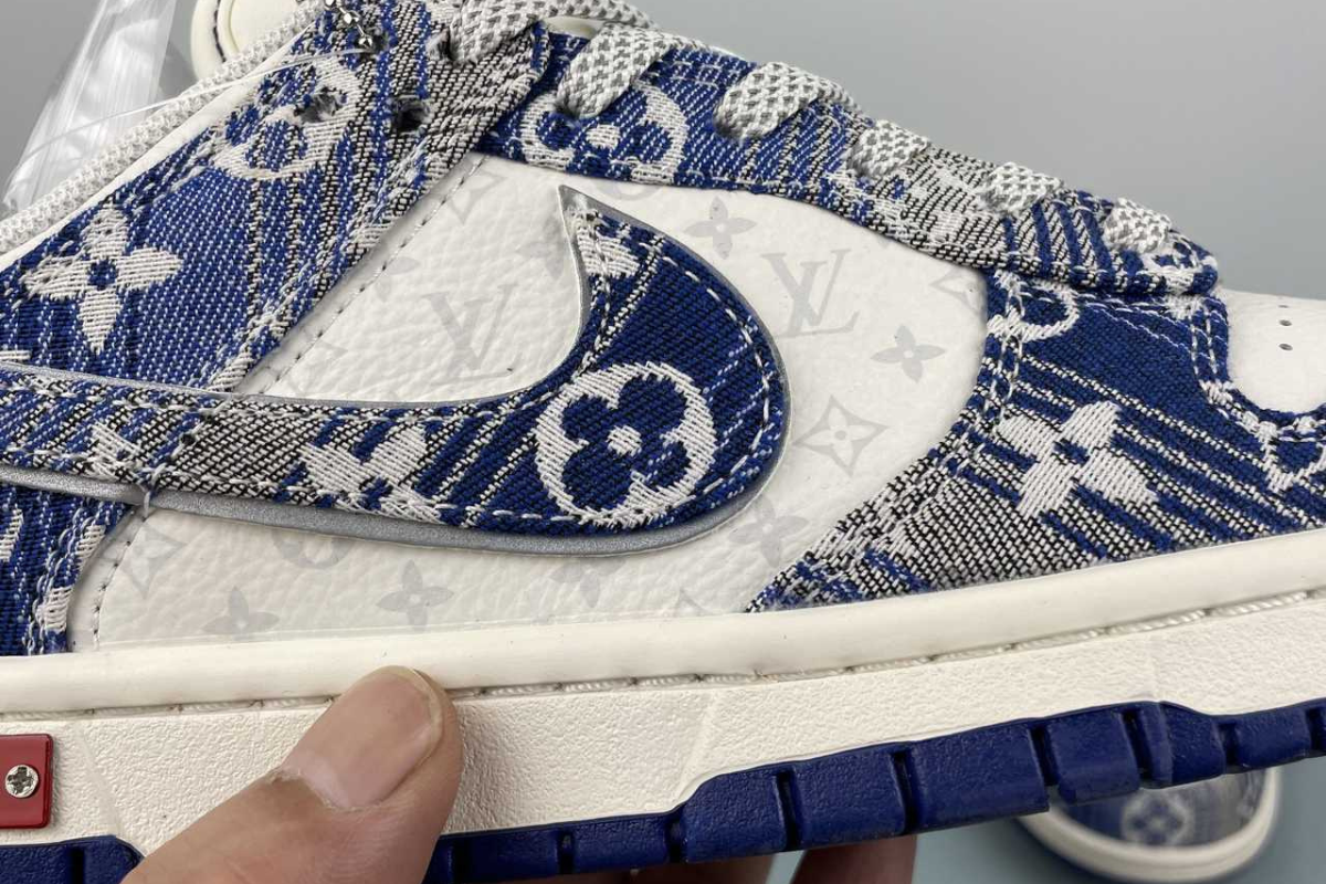 The Nike Dunk Low x Louis Vuitton "Blue" is a luxury custom sneaker that blends the classic Dunk Low silhouette with Louis Vuitton's iconic blue monogram denim design. This stylish collaboration stands out with premium materials and bold branding, making it a must-have for fashion-forward sneaker collectors.