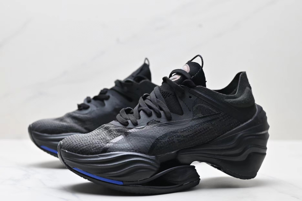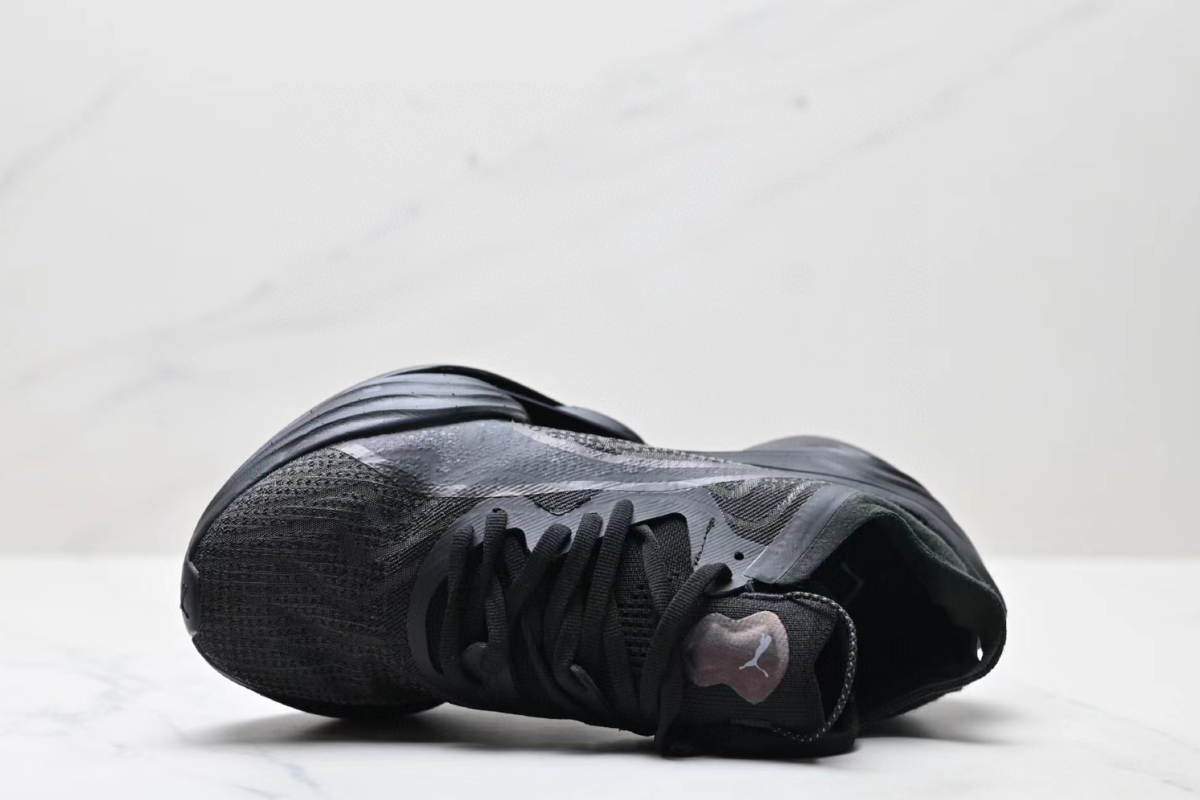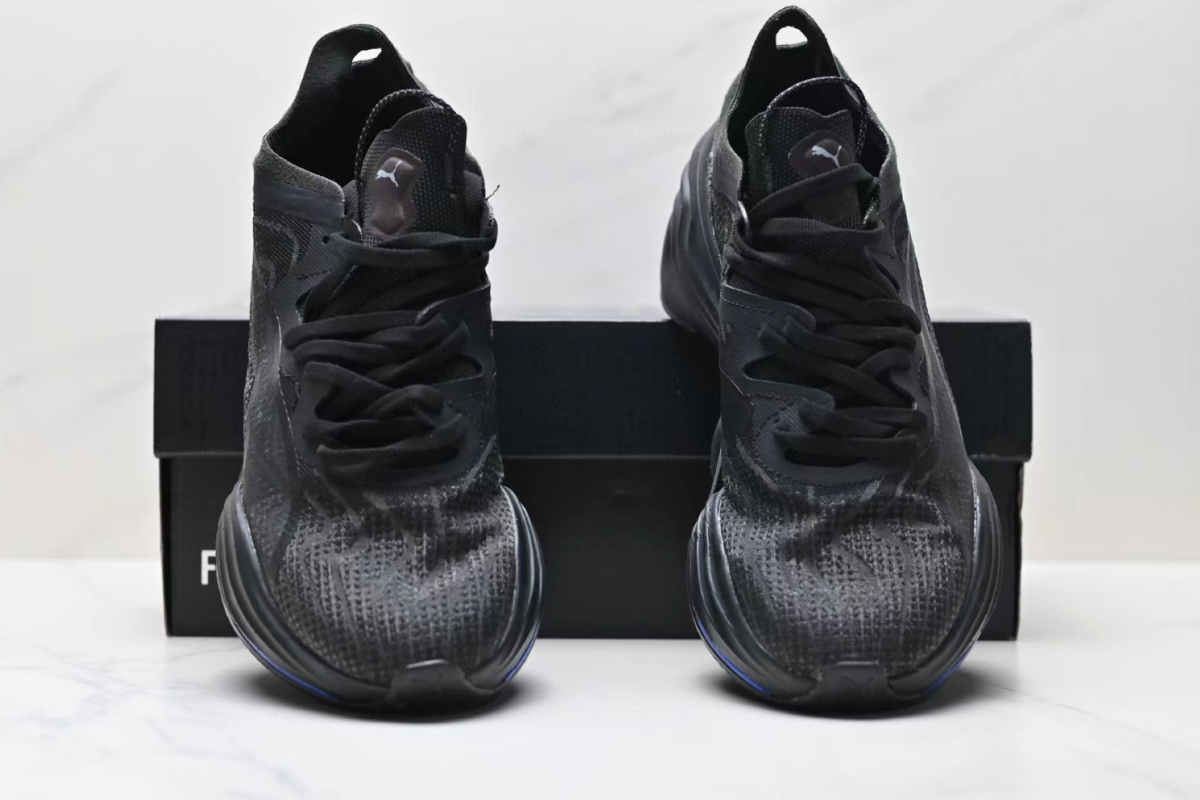The PUMA Fast-R Nitro Elite 2 Blackout Running Shoes feature a futuristic design with a full-length NITRO Elite foam midsole for maximum energy return and cushioning. Designed for speed and performance, they offer a carbon fiber plate for propulsion and a bold, all-black aesthetic for a sleek, aggressive look. Perfect for elite runners seeking lightweight support and responsiveness.