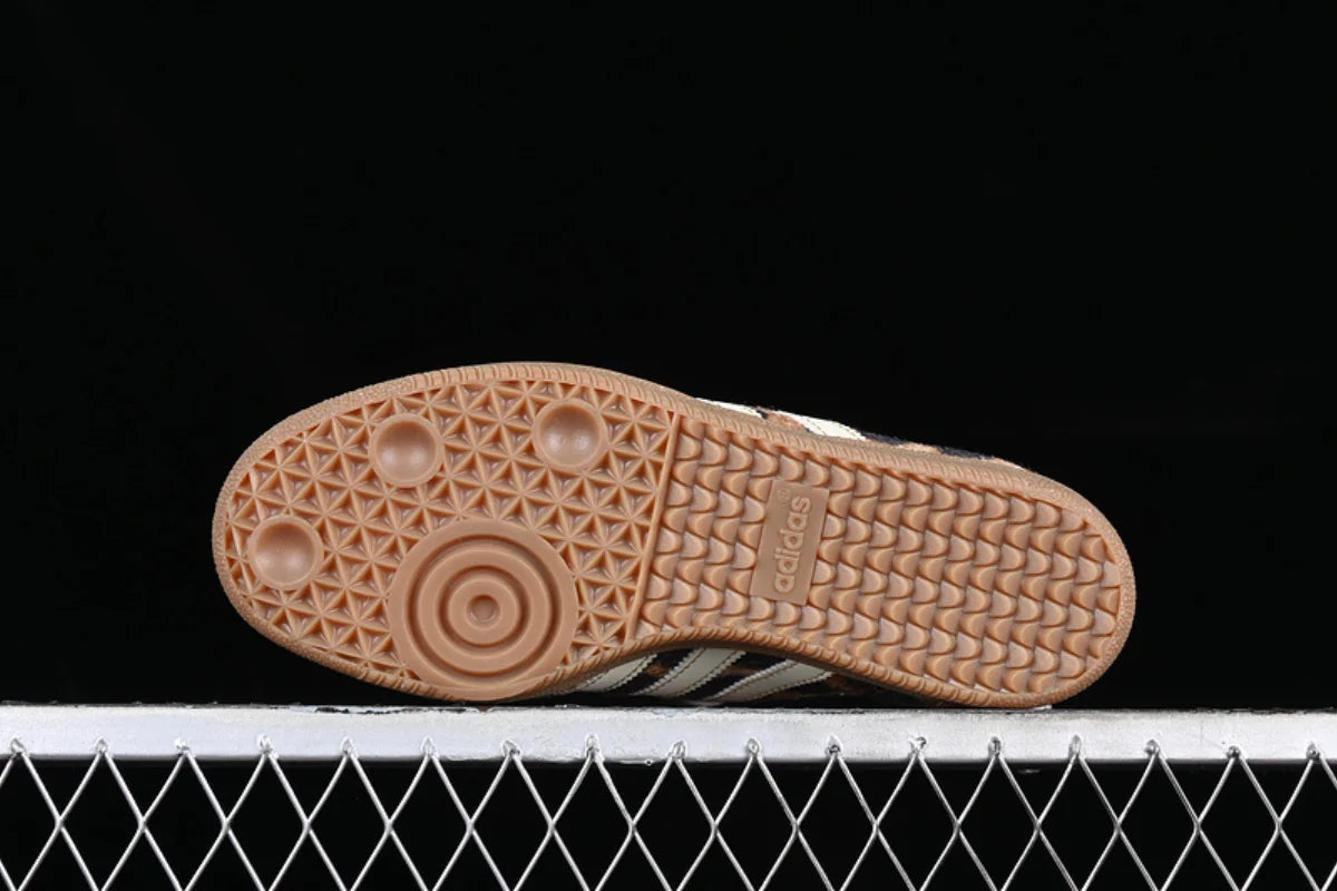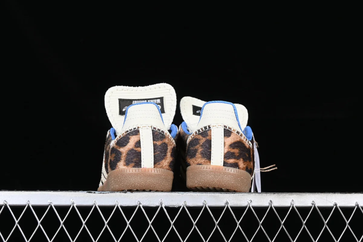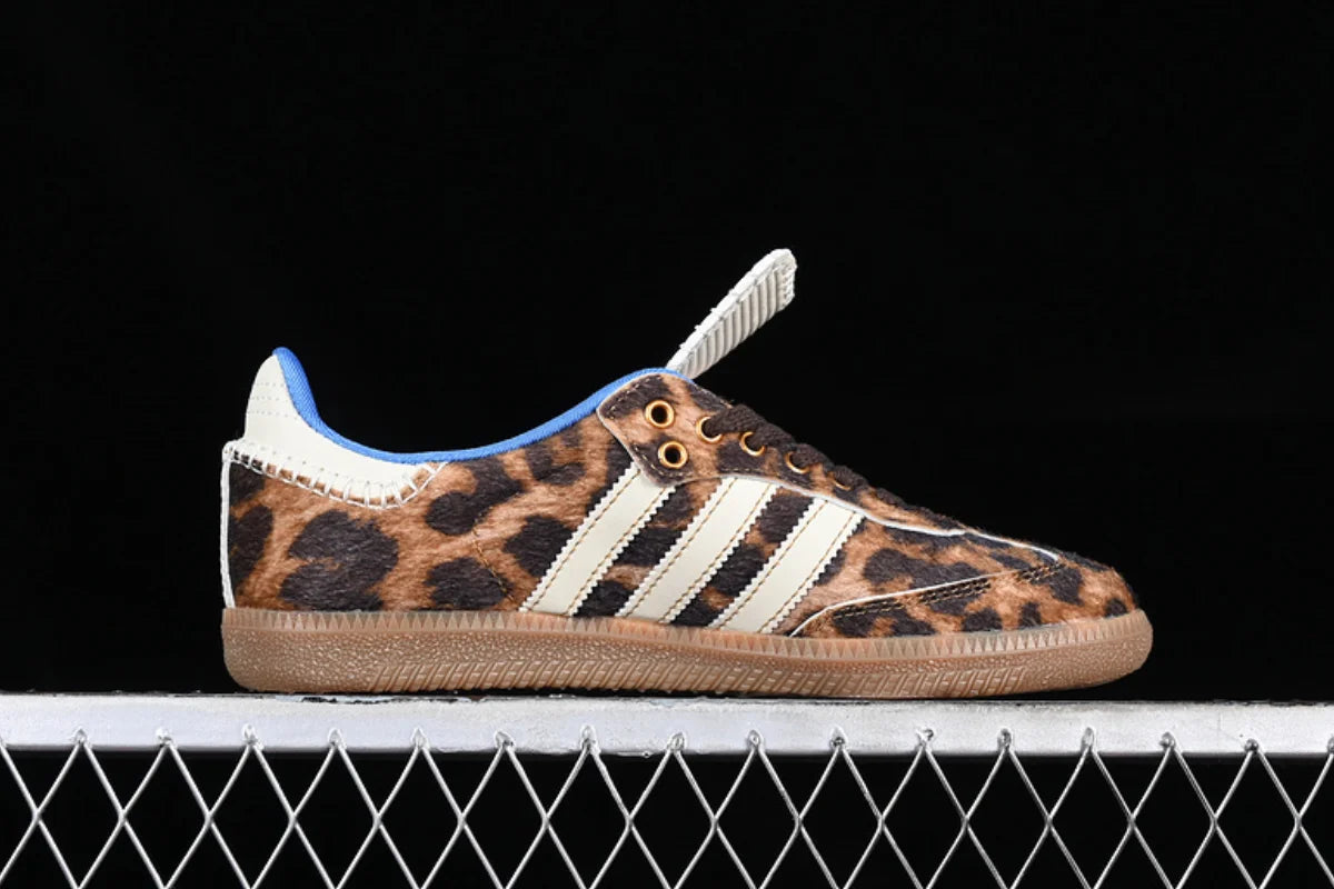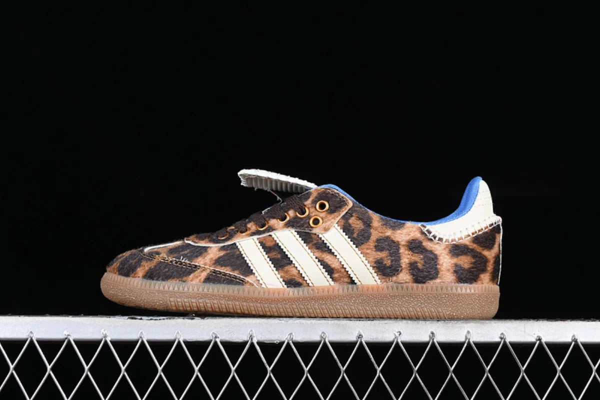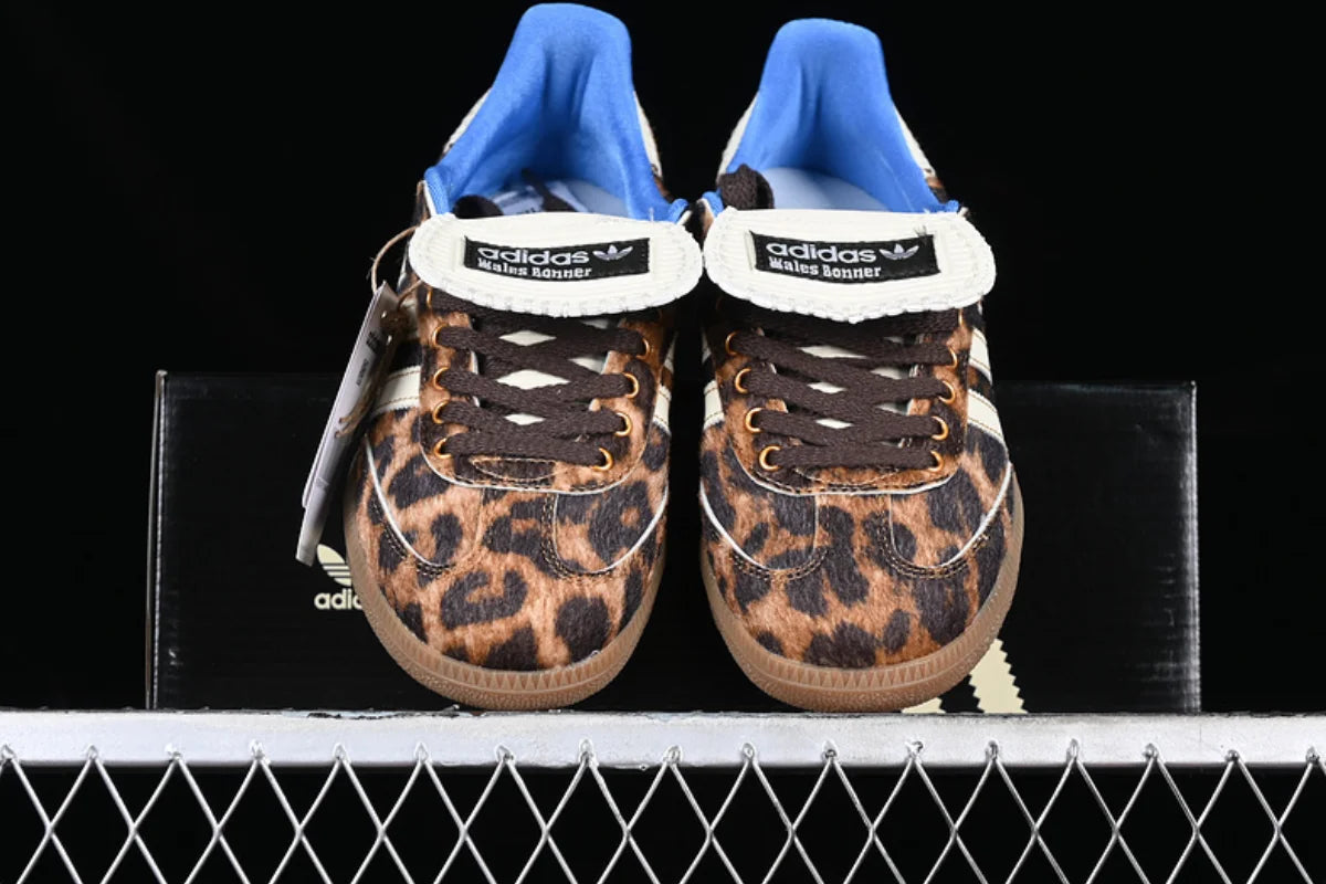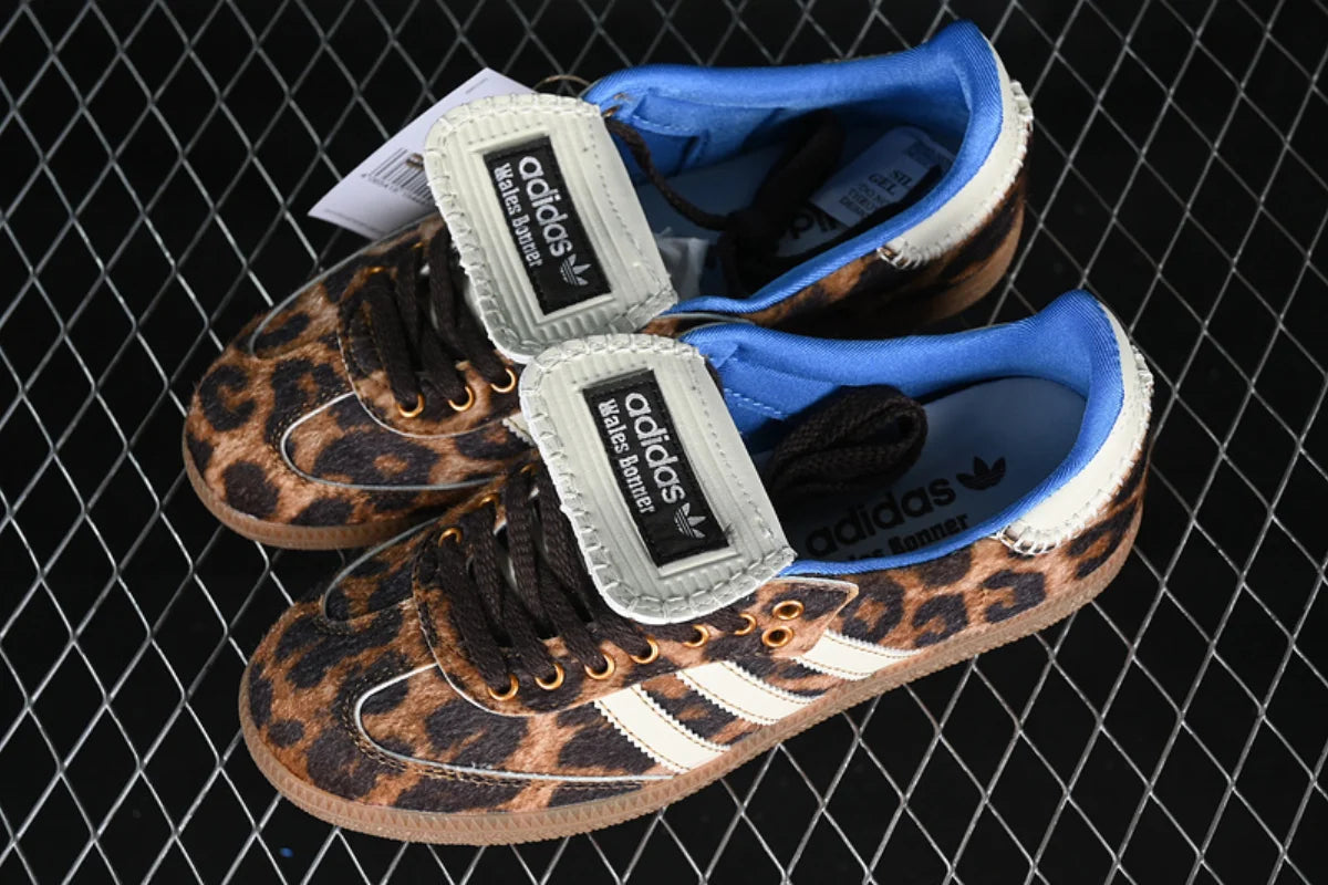 he Wales Bonner x Adidas Samba Pony Leopard is a bold fusion of vintage Adidas heritage and Wales Bonner’s distinct luxury craftsmanship. Part of their celebrated collaboration, this sneaker transforms the iconic Samba silhouette into a statement piece that balances classic sport style with avant-garde fashion.